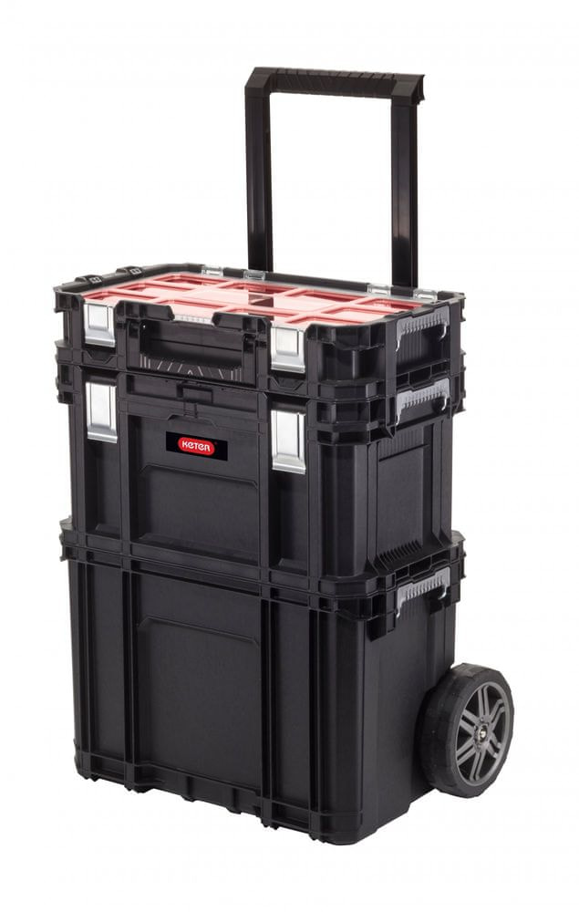 Mobil és moduláris, a Connect gurulós szerszámosláda szett segítségével könnyedén szervezheti és szállíthatja eszközeit és tartozékait, akár munkahelyén, akár otthon dolgozik. Használja a testreszabható rendszer egységeket az Ön igényeinek megfelelően. A kocsi, szerszámosláda és kisalkatrész-szervező különböző tartozékokat tartalmaz (csavartartó, elválasztó). A gumiabroncsok egyszerűen és kényelmesen vontatják a rendszert az egyik helyszínről a másikra.