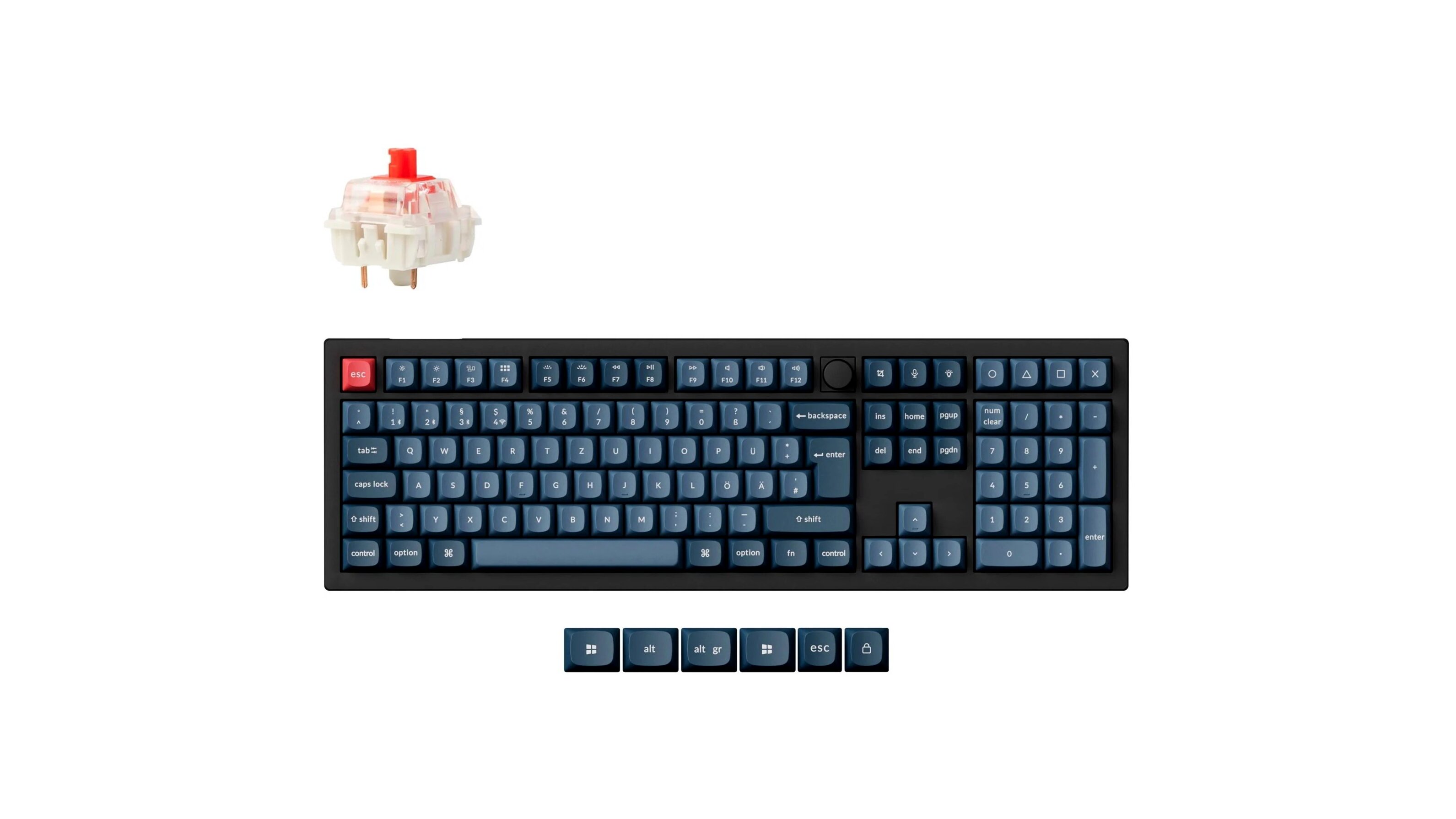 - Teljesen összeszerelt billentyűzet (PCB, PC plate, hangcsillapító szivacs, stabilizátorok, forgó tárcsa)