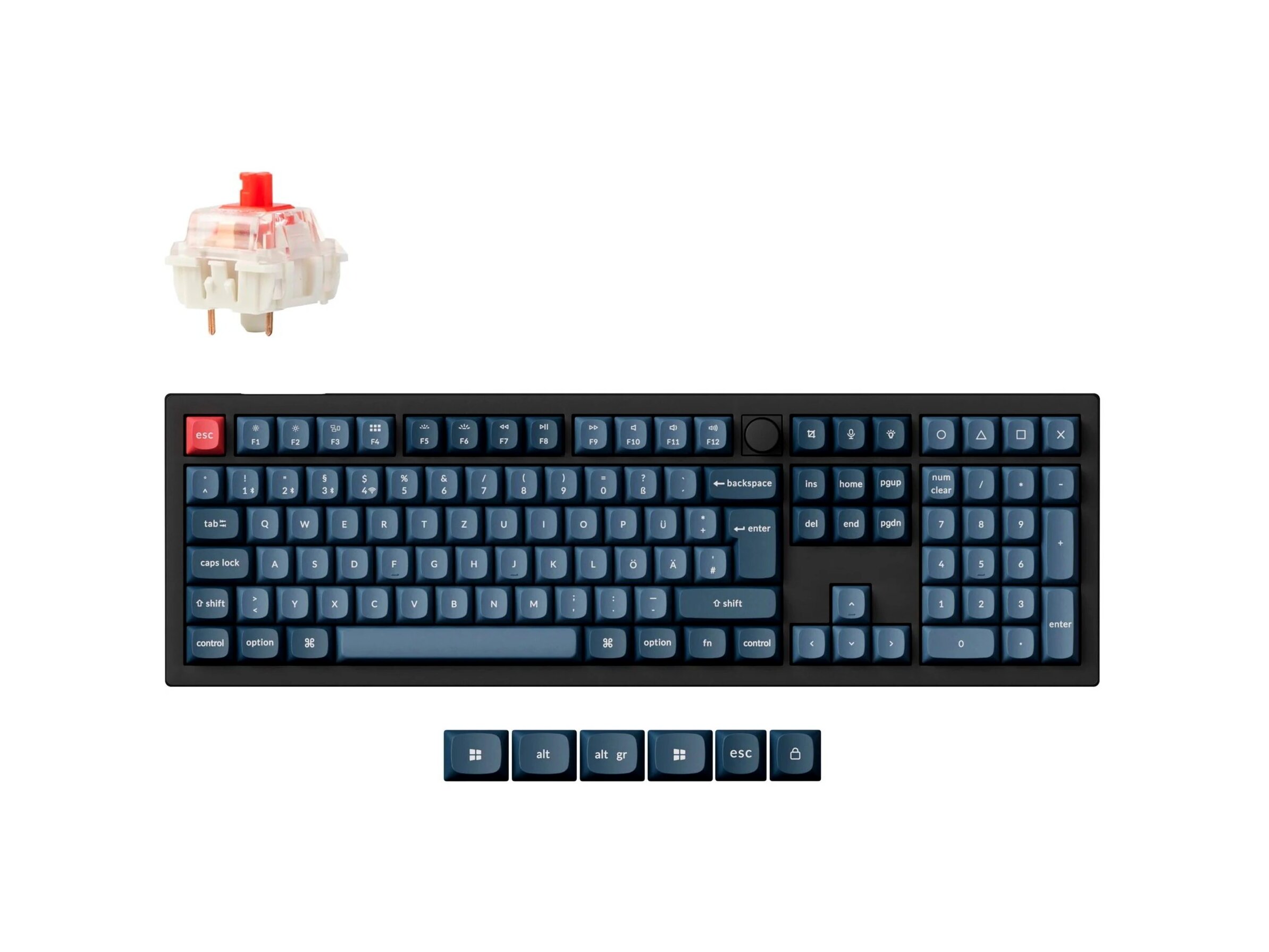Keychron V6 Max Red Switch Mechanikus Wireless USB-C Gaming Billentyűzet DE - Fekete/Kék