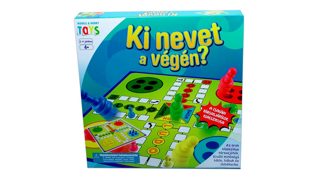 A Ki nevet a végén az örök klasszikus társasjáték. A tábla és a bábuk kiváló minőségűek, a tábla külön összehajtható, így könnyedén magatokkal vihetitek nyaralásra, házibuliba.