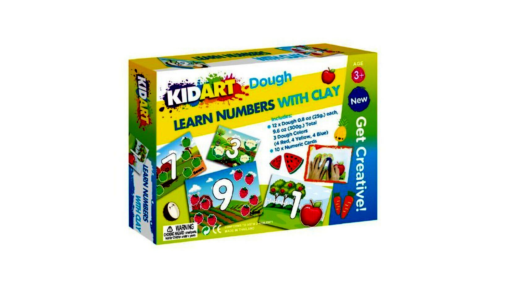 A gyerekek könnyedén és játékosan ismerkedhetnek meg a számok világával a hatalmas gyurmakészlet segítségével. A csomag 10 db szám kártyát, valamint 12 db 25 grammos gyurmát tartalmaz (3 színben) a formázáshoz. A kártyákon gyümölcsöket és zöldségeket számlálhatnak a gyerekek, megformázhatják a számokat gyurmából és rányomhatják a lapokra, ezzel segítve a tanulást és a berögzülést.