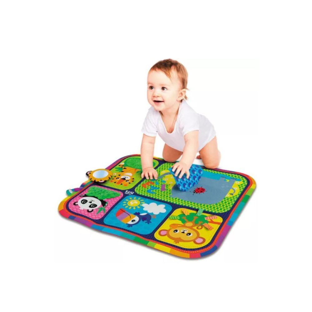A picik imádnak a földön kúszni, mászni, hemperegni, és ez az interaktív játszószőnyeg tökéletesen elősegíti ezt az egészséges tevékenységet. Az Első állatkertem játszószőnyeg számos lehetőséget tartogat a babák számára: különböző textúrák, csörgő és zizegő elemek, élénk színek és minták, valamint megragadható címkék. Az apróságoknak igazi csodaországot varázsol szobájukba.
