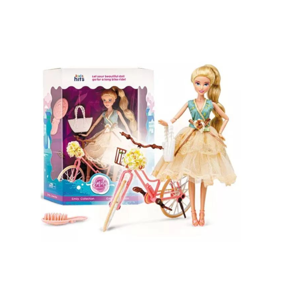 A Kids Hits márka híres a magas minőségű, részletgazdag és tartós játékairól, amelyek minden gyerek igényeit kielégítik. A szerepjátékok révén a gyerekek nemcsak szórakoznak, hanem életre szóló készségeket is elsajátítanak. Emily Grace babaarzenálja tökéletes választás minden kicsi számára, aki imádja a babákat és a bicikliket!