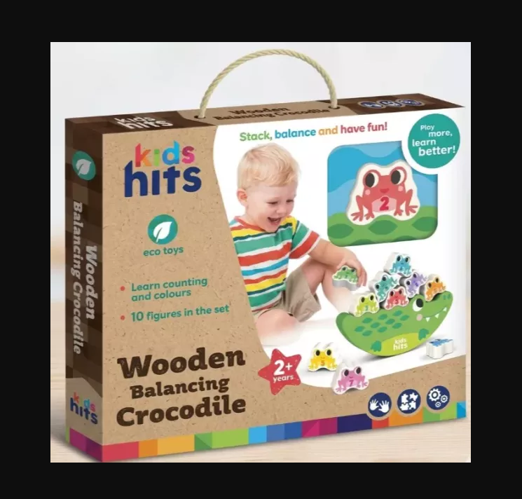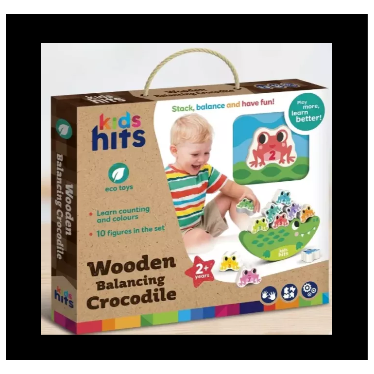 Vidám, billegő krokodil és színes béka figurák teszik igazán izgalmassá ezt a készségfejlesztő bébijátékot, amely játékosan vezeti be a kicsiket a színek, a számok és az egyensúly világába. A strapabíró fa kialakítás, a kedves állatfigurák és az egyszerű szabályok miatt gyorsan a gyerekszoba kedvenc játékává válhat.