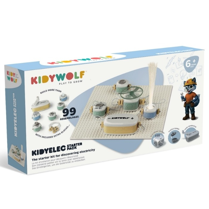 A Kidywolf egy belga márka, amely kifejezetten gyerekeknek fejleszt innovatív, tartós és biztonságos oktatójátékokat. Tervezőik célja, hogy a technika és a tudomány ne száraz tananyag legyen, hanem élvezetes játékélmény. Termékeiknél kiemelt szempont a strapabíró kialakítás, a gyerekbarát használat és az, hogy a játék hosszú távon is lekösse a gyerekek figyelmét – mindig legyen egy következő kihívás, egy új projekt, amit meg lehet építeni.