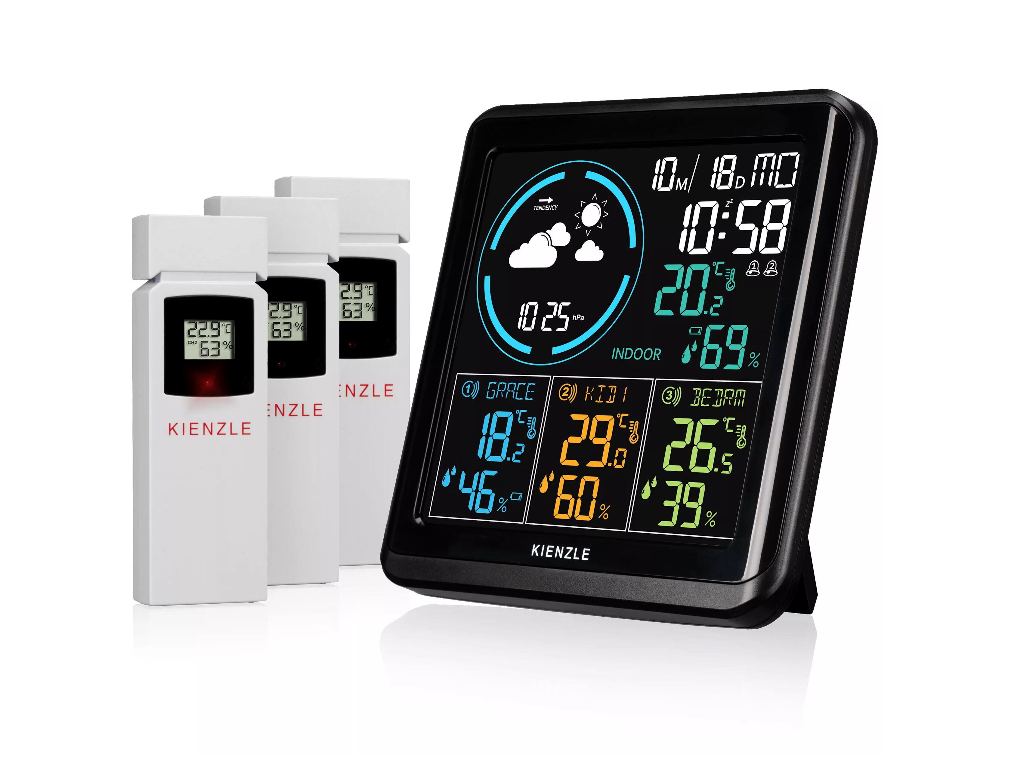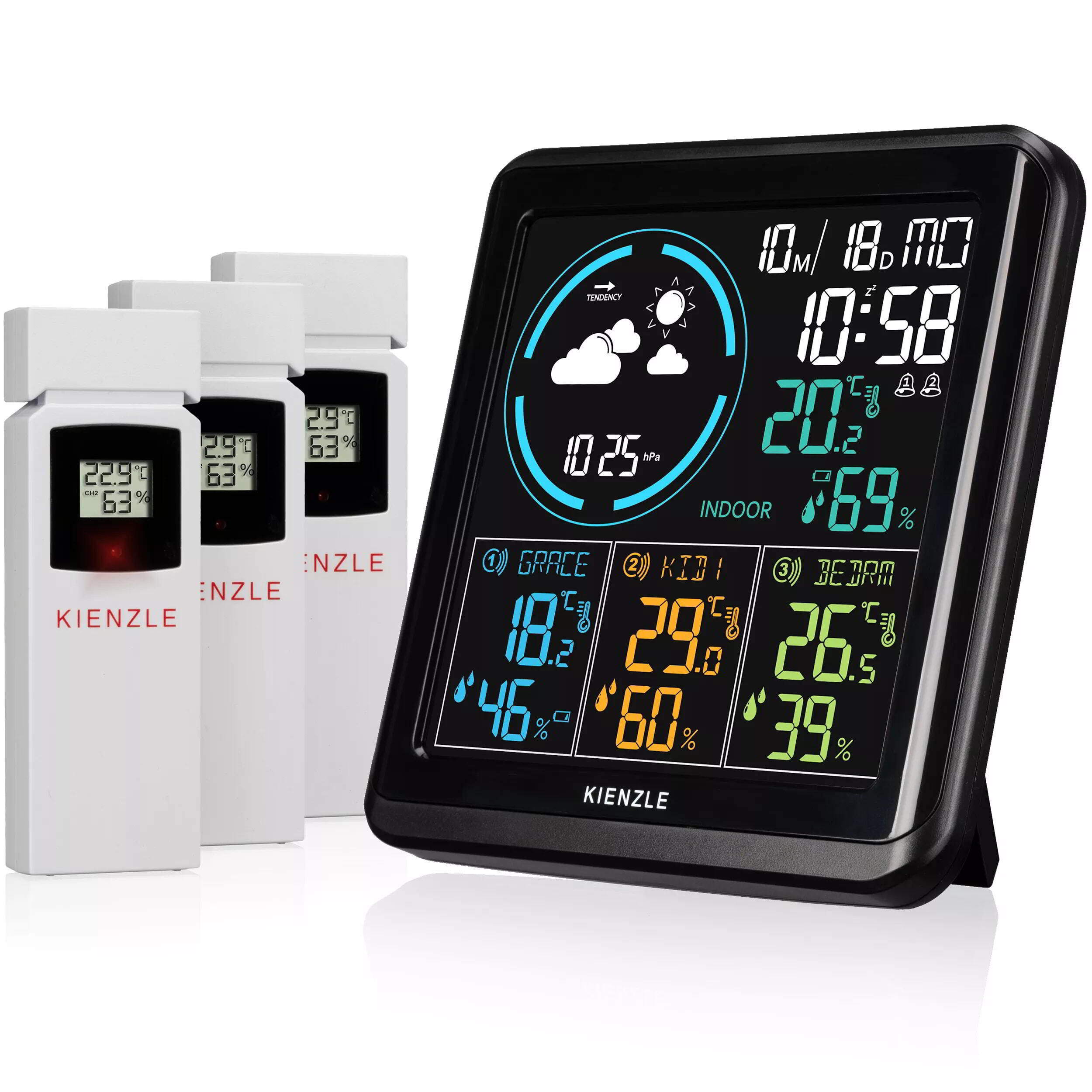 Tapasztald meg a Kienzle DCF rádióvezérelt meteorológiai állomásának előnyeit, mely három külső szenzorral rendelkezik. Fekete színű, elegáns kivitelben kapható, tökéletes választás mindazok számára, akik részletes időjárási és beltéri klímaadatokra kíváncsiak.