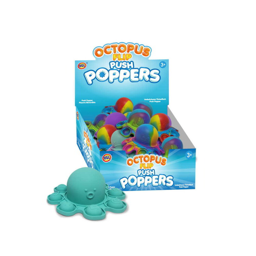 A rendkívül népszerű Push Popper Flip Octopus termékcsalád nagyobb változata. A polip széle körül nyolc popperpárna található, amelyek befelé nyomva kielégítő pop hangot adnak, akárcsak az újrafelhasználható buborékfólia. Egyetlen nyomást követően a buborék a másik oldalon jelenik meg, készen arra, hogy újra megnyomjuk és kipukkasszuk. A polip feje nagyon hasonlóan viselkedik, mint egy nagy Push Popper gomb. Kétszer akkora, mint az eredeti polip játék, és megfordítható kialakítással is rendelkezik, az egyik oldalon egyszínű, a másik oldalon pedig egy menő nyakkendőfestéses hatást kelt, amikor megfordítod a játékot. Ezt a játékot rendkívül élvezetes használni, és nagy sikert arat a népszerű Tik Tok felhasználók és más közösségi média influencerek körében. A Pop it! játékok remek és népszerű stresszoldók, na meg unaloműzőnek sem utolsók. Ez a szilikon tapintású polip ráadásul a hangulatát is tudja változtatni - és a hangulatával együtt a színét is -, így a gyerekek kifejezhetik vele akár az is, mit éreznek. A játék remekül fejleszti az érzelmi intelligenciát.