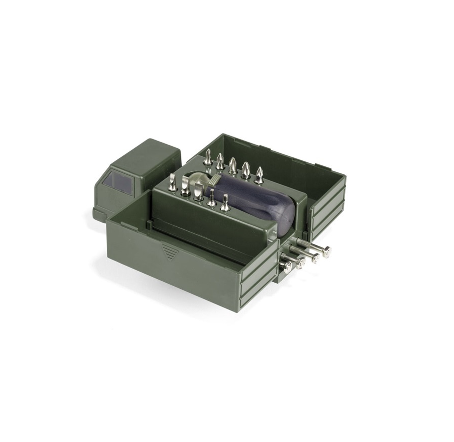 A Kikkerland CD521 szerszámkészlet minden olyan elemet tartalmaz, amire szüksége lehet kisebb szerelési vagy karbantartási feladatokhoz. A 4db precíziós csavarhúzó és a nagyobb csavarhúzó a 10db cserélhető fejjel a leggyakoribb csavarhúzási igényeket kielégíti.