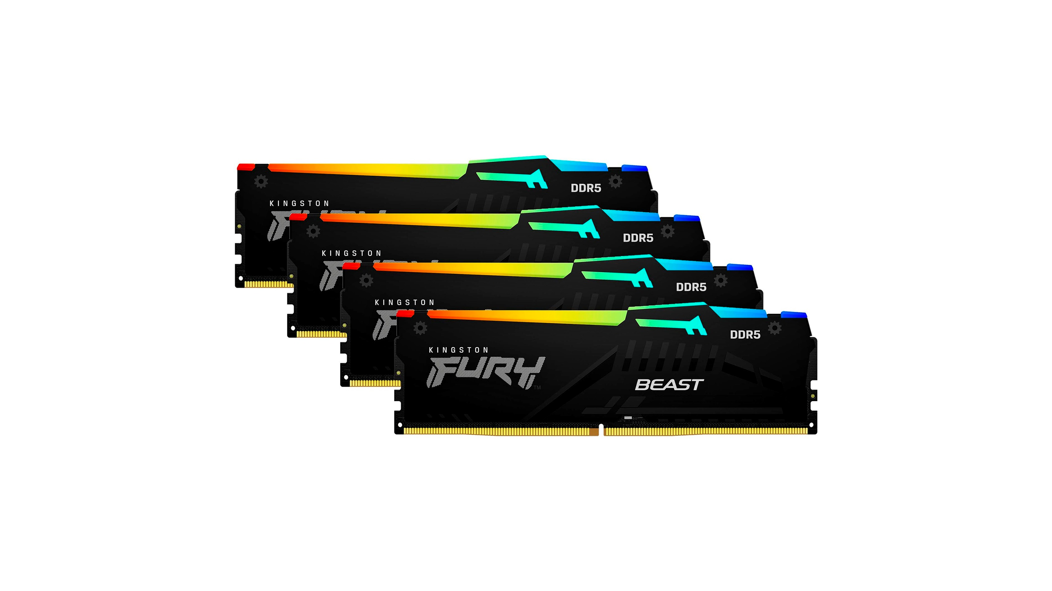 A Kingston FURY KF556C40BBAK4-128 egy 4x 32 GB-os DDR5-5600 (PC5-44800) memóriamodulból álló készlet a Fury Beast RGB sorozatból. A 288 tűs modul 40-es késleltetést támogat 5600 MHz-en, és 1,3 V feszültséget igényel. A Beast RGB sorozat egyik jellemzője az állítható RGB LED világítás. Az Intel XMP 3.0-s verziója támogatott.