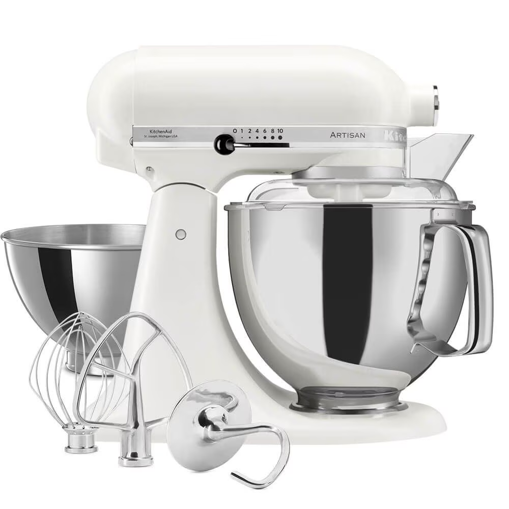 A KitchenAid Artisan 4,8 literes konyhai robotgépe a klasszikus formavilágot ötvözi a modern, megbízható technológiával. Időtálló, masszív felépítésének és sokoldalú tartozékainak köszönhetően pillanatok alatt válhat a konyha központi elemévé – legyen szó tésztadagasztásról, habverésről vagy krémek készítéséről.