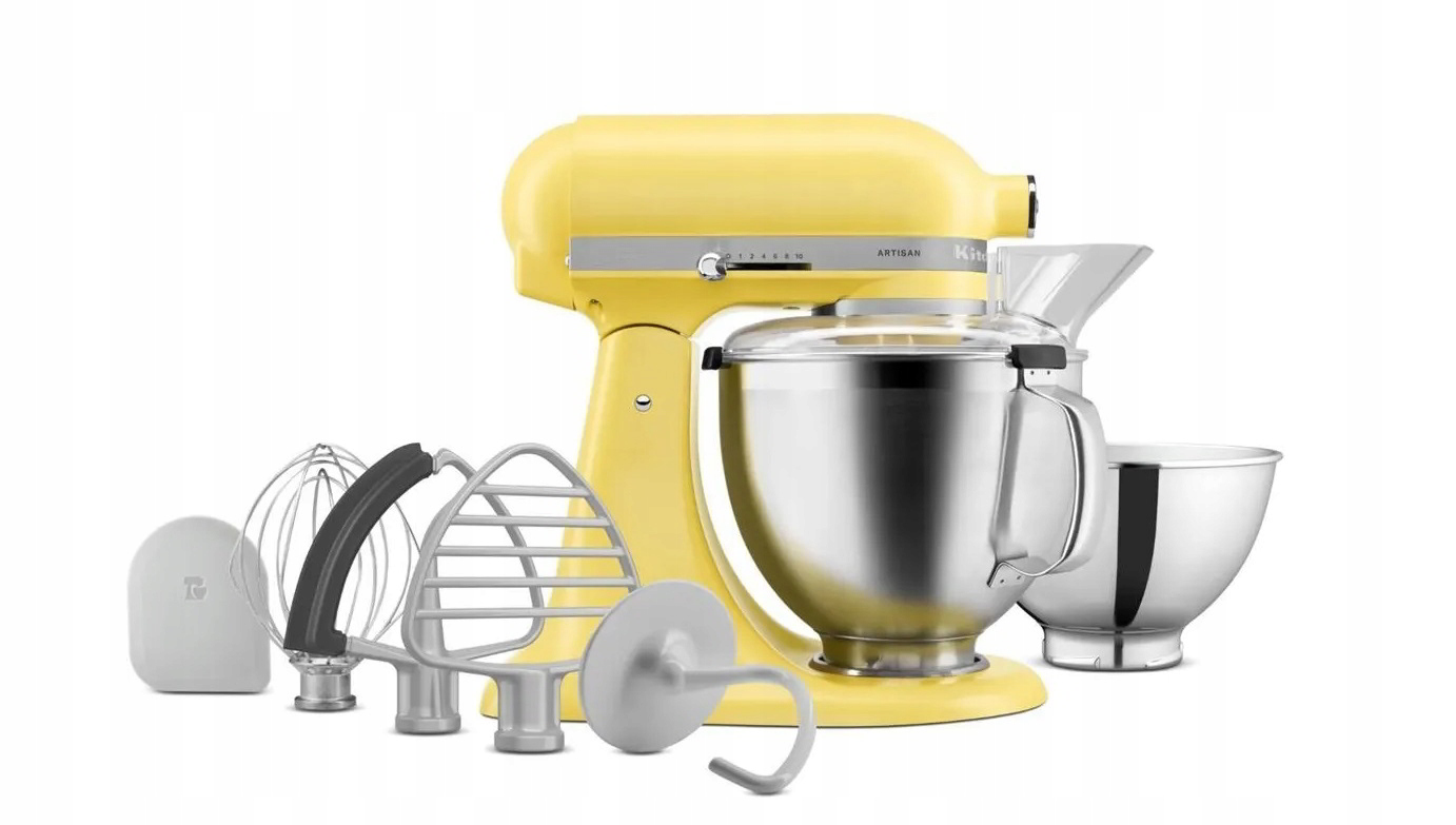 A KitchenAid 2025-ös Év Színében pompázó, döntőfejű állványkeverő nemcsak professzionális konyhai teljesítményt nyújt, hanem hangulatot teremt a konyhában. A puha, energikus sárga, krémes, bársonyos felület modern, mégis nosztalgikus megjelenést ad, amely az otthonosság, a kreativitás és az örömteli főzés hangulatát idézi.