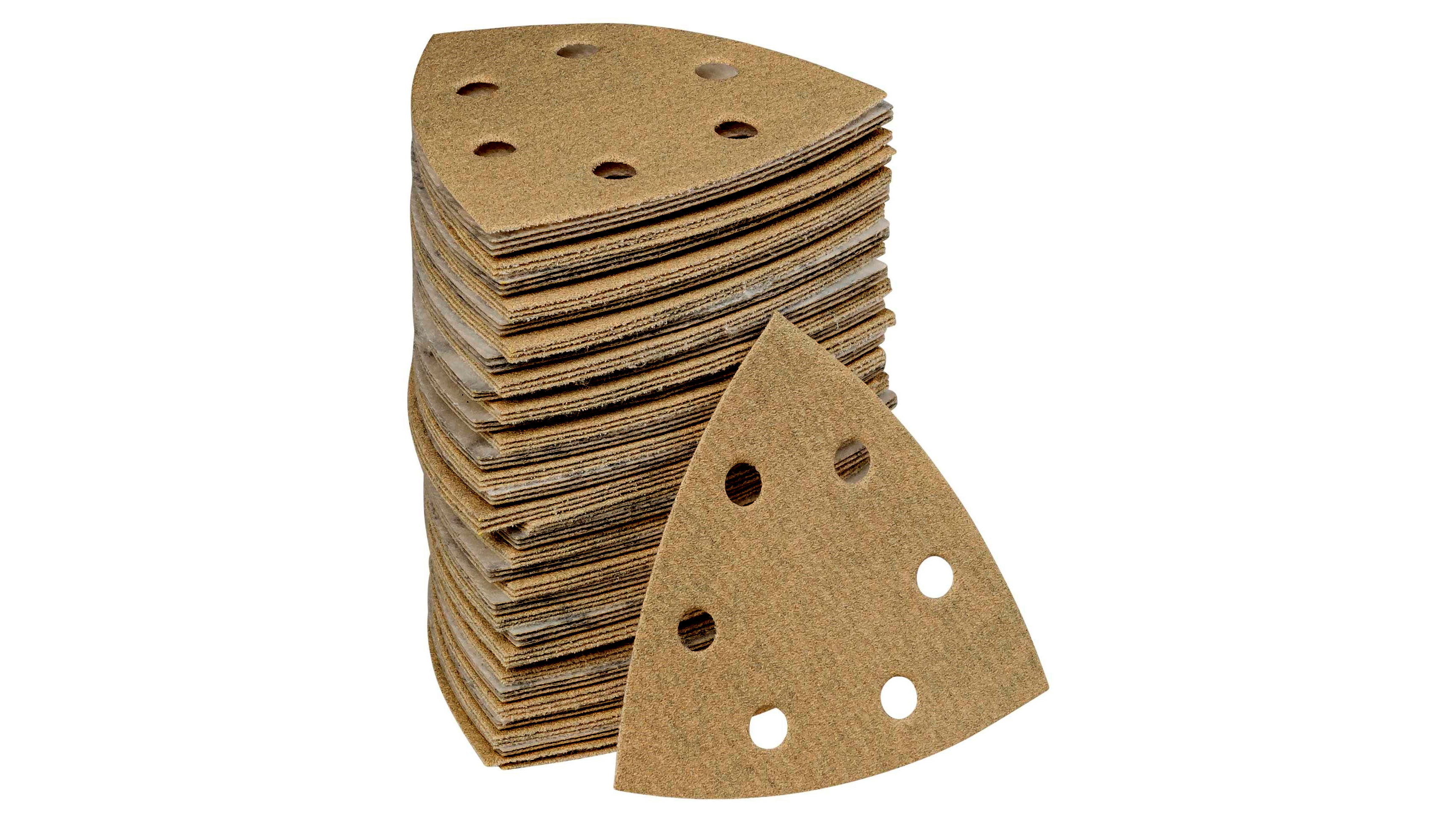 Háromszög alakú csiszolólap, alkalmas festékhez, lakkhoz, töltőanyaghoz és fához, minden kereskedelmi sarokcsiszolóhoz és multi csiszolóhoz.
