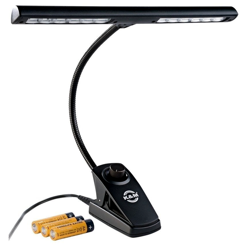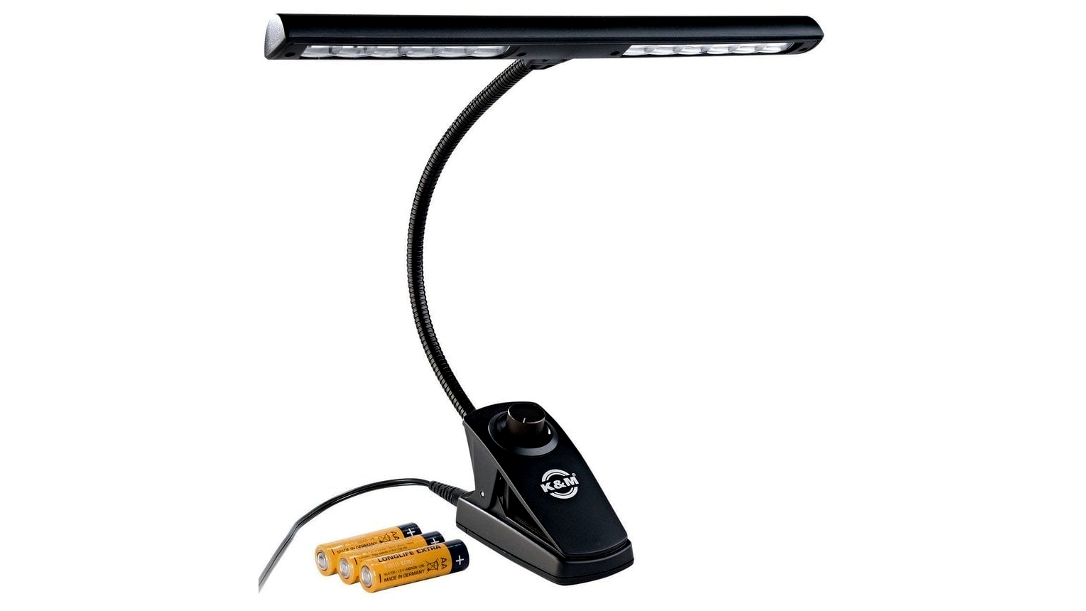• Erőteljes, mégis kíméletes fényforrás: 12 energiatakarékos, hosszú élettartamú LED biztosítja az optimális fényt kottákhoz és hangszerekhez, vakító fény és káprázás nélkül.