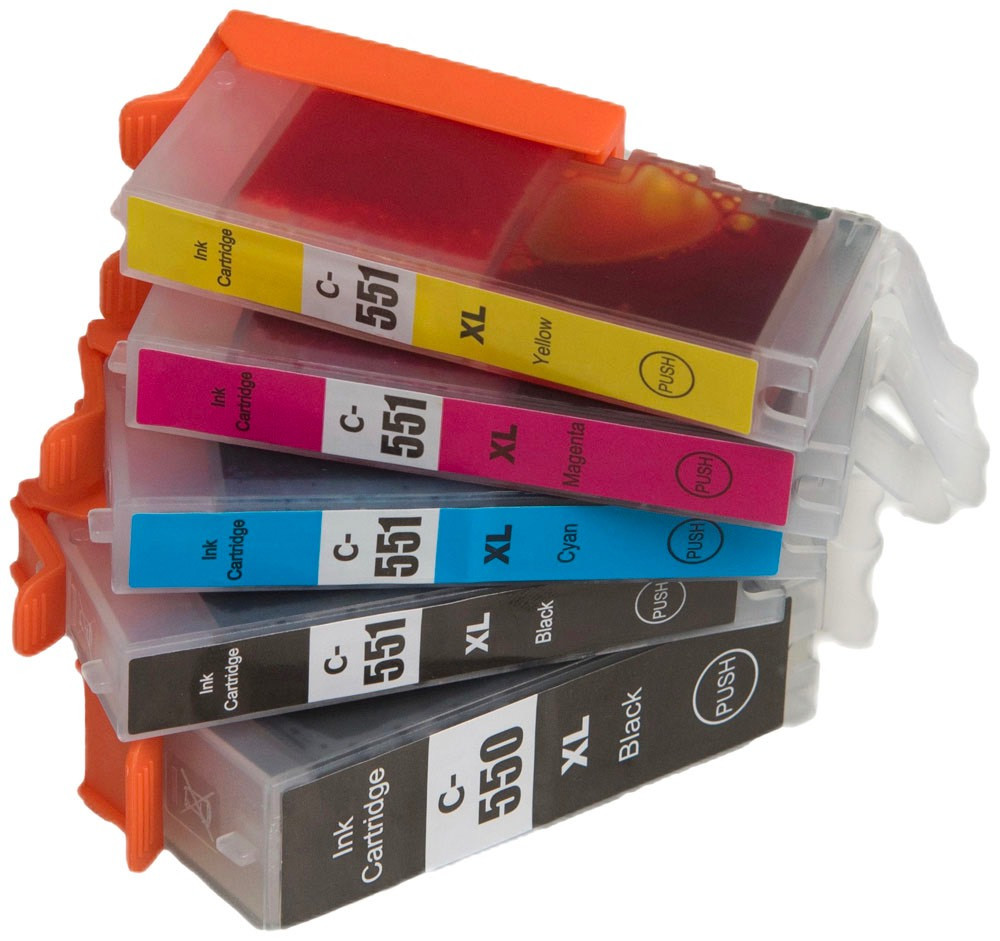 - Színek: fekete (PGI-550 XL), fekete (CLI-551 XL), ciánkék, magenta, sárga