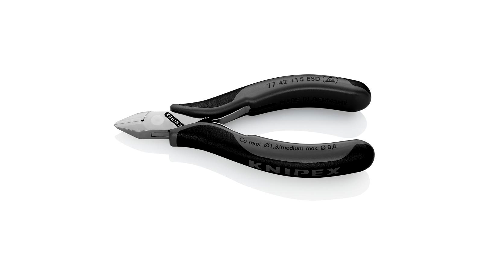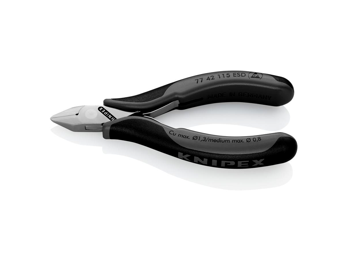 Precíziós fogók a legfinomabb vágómunkákhoz, például az elektronikában és finommechanikában. Kivitel villamosan levezető – disszipációs. Átdugott precíziós csukló. Súrlódásszegény kettősrugó a sima és egyenletes nyitáshoz. A fényezés egy finom olajfilmmel jó rozsda elleni védelmet biztosít – nem okoz zavart leváló krómdarabkákkal az áramkörökben. Vágóélek plusz induktív edzésű. Fogantyúk kétszínű több részből álló fekete/szürke bevonattal. Csúcsos fej fazetta nélkül. Vágóél keménység kb. 57 HRC. Vágófej: különleges minőségű speciális szerszámacél, kovácsolt, olajban edzett.
