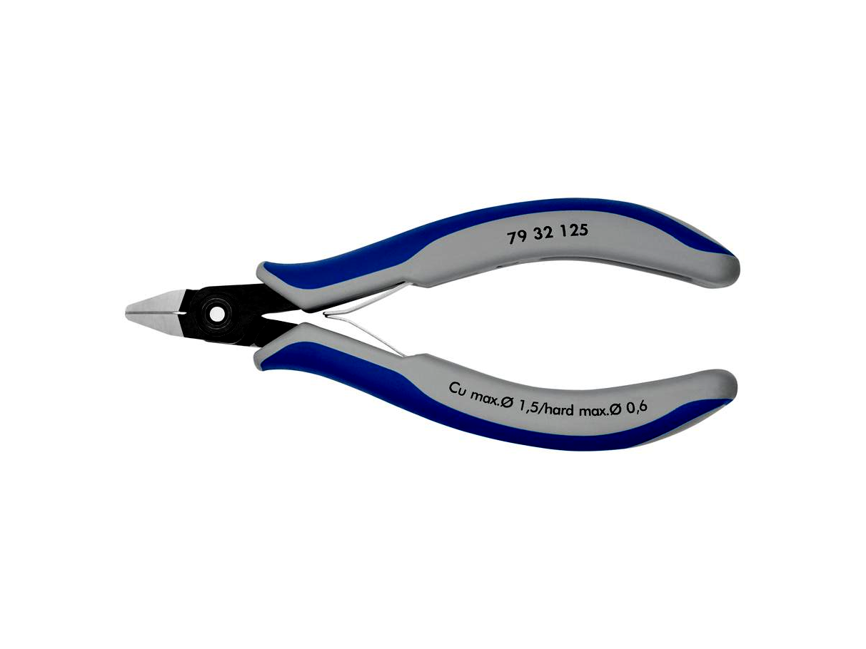 Az összeállítás teljesítménye és eredményessége a legnagyobb igényeknek is megfelel. Precíziós fogók a legfinomabb vágómunkákhoz, például az elektronikában és finommechanikában. Precízen köszörült, éles vágóélek, igen kis fazettákkal, az érzékeny elektronikus alkatrészek pontos vágásához. Fazetta nélkül is a színelő vágáshoz. Vágóélek plusz induktív edzéssel, vágóél keménység kb. 64 HRC. Csavarozott csukló: a fogó igen pontos, hézagmentes járása. Precíziós gyártású csuklófelületek az egyenletes, súrlódásszegény mozgás érdekében, minden nyitástartományban. Súrlódásszegény kettősrugó a sima és egyenletes nyitáshoz. Káprázatmentes kikészítés. Kis súly. Ergonómiai, kétszínű, többkomponensű fogantyú bevonatok. Kék/szürke. hegyes fej golyóscsapágy-krómacél, kovácsolt, több fokozatban olajban edzett.