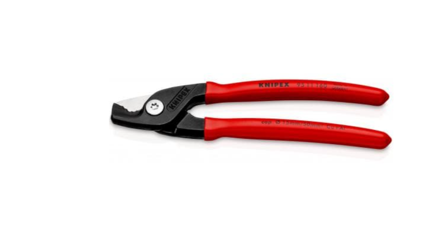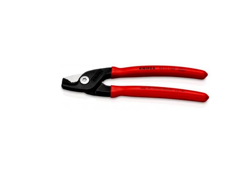 - Edzett szerámacélból készült kábelvágó fogó, mely egy- és többerű alumínium- és rézkábelekhez alkalmas.