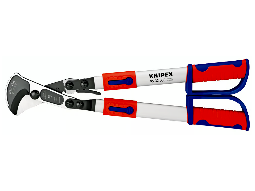 Ez a KNIPEX kábelolló ideális választás minden szakember számára, aki precíz és hatékony munkavégzést keres. Kétkezes kivitelével és állítható, behajlítható teleszkópos szárával könnyedén vágja egy- és többvezetékes réz- (CU) és alumíniumkábelt (AL) akár 38 mm átmérőig. A KNIPEX mérnökei optimalizálták a vágóél-geometriát, hogy vágás közben a kábel sérülése nélkül lehessen dolgozni.