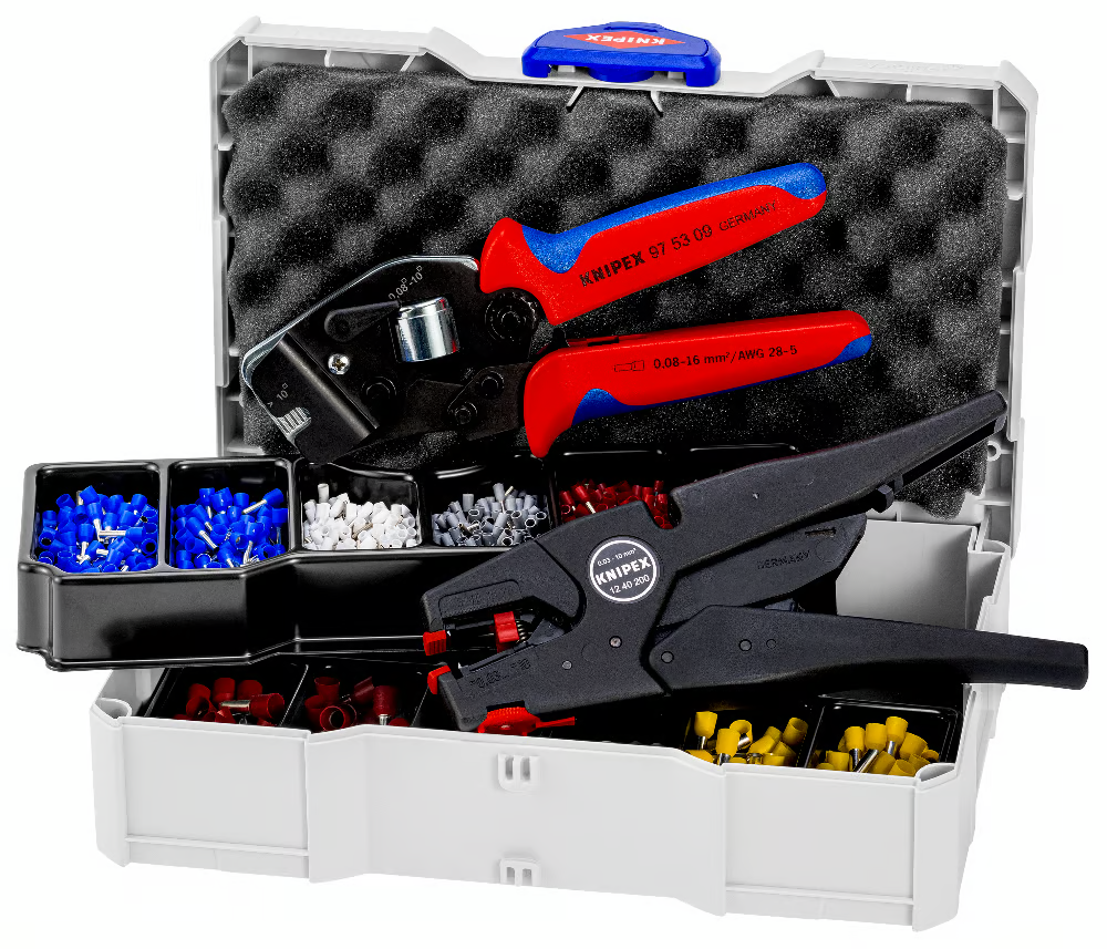 Fedezze fel a KNIPEX aderendhülseszettet, amely rendszerezett tárolást és professzionális szerszámokat kínál minden elektrotechnikával foglalkozó szakember számára.