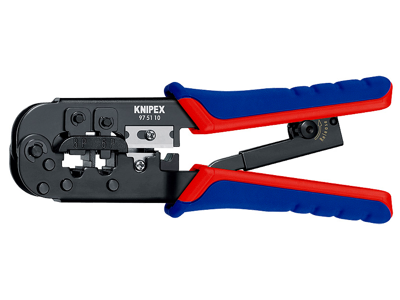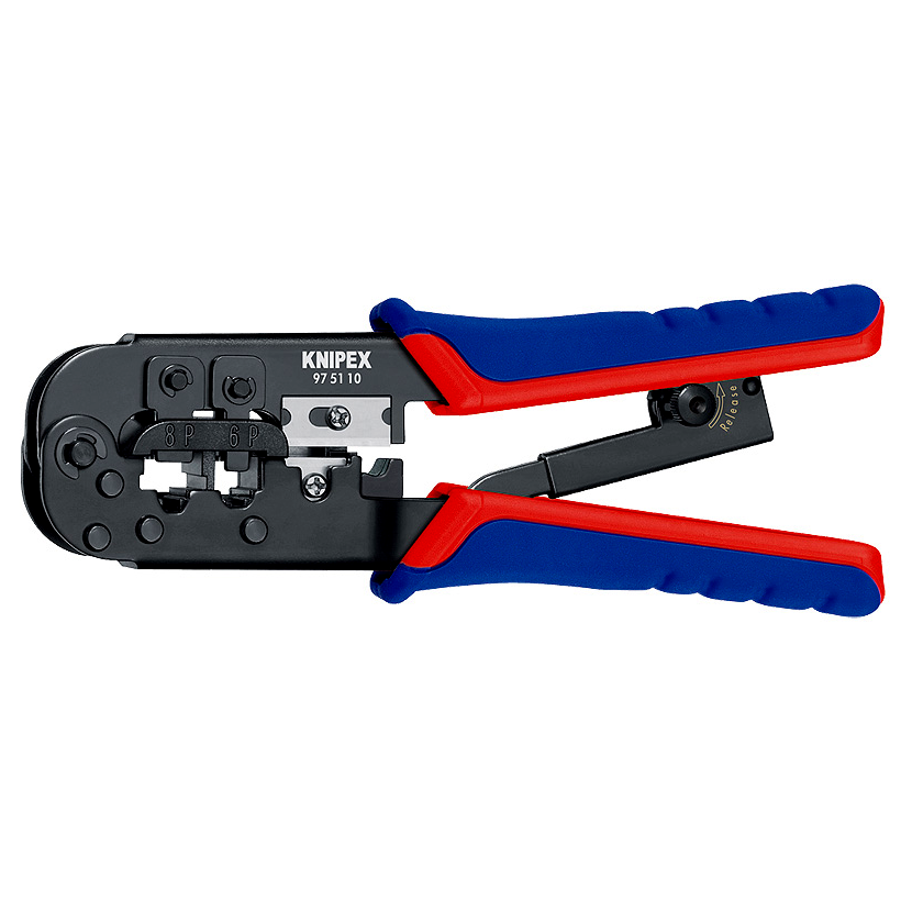 - RJ 11/12 típusú (9,65 mm széles) és RJ 45 típusú (11,68 mm széles) 6- és 8 pólusú Western dugók préseléséhez