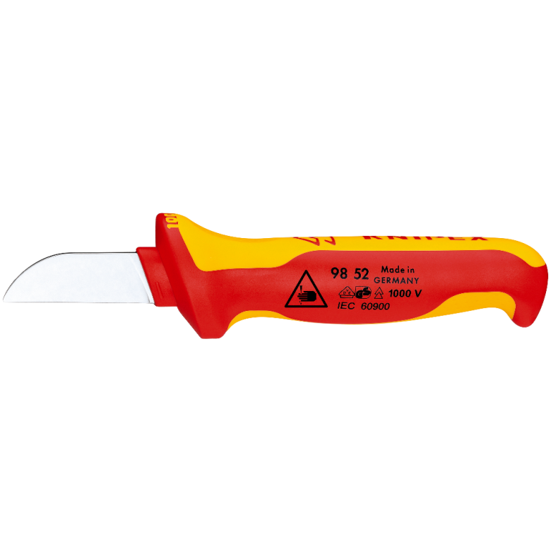 A kábelkés markolatformája ergonómiai szempontból tökéletesített, így a hosszabb használat sem okoz kényelmetlenséget. A csúszásmentes, többkomponensű szigetelő markolat VDE-engedéllyel rendelkezik, amely biztosítja a szükséges biztonságot elektromos munkák során. A csúszásvédő elemek garantálják, hogy a kés stabilan marad a kézben munka közben.