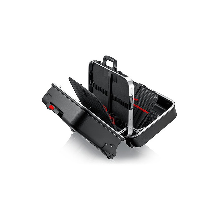 - Az alaptálca magassága 58 mm, rugalmas betétekkel felosztható; fedéllap hat nagy benyomható rekesszel, nyomógombbal rögzíthető