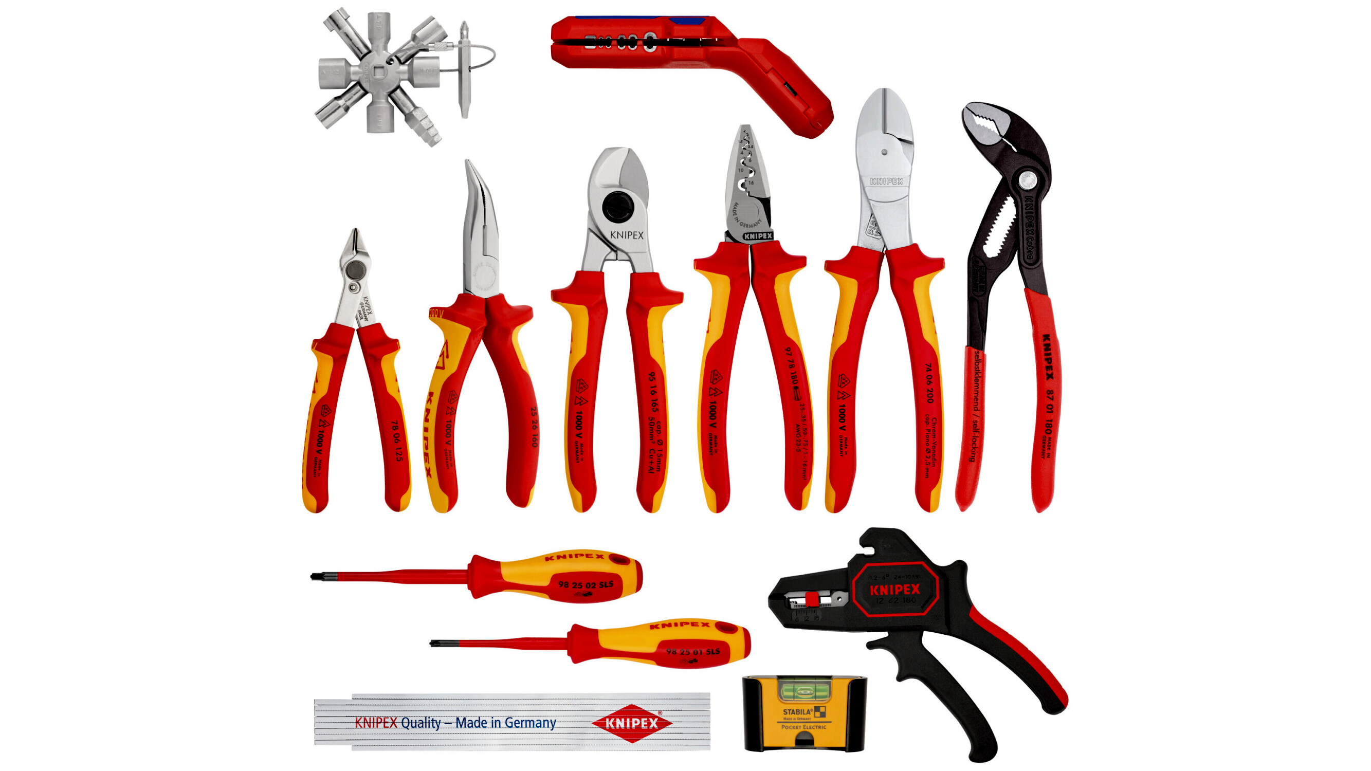 Fedezd fel a villanyszerelők számára összeállított, kiváló minőségű 14-darabos Knipex szerszámkészletet! Ezzel a praktikus kibővített szettel könnyen és hatékonyan végezheted el az elektromos munkákat. A szerszámok egy része VDE tanúsítvánnyal rendelkezik, megfelelve a DIN EN 60900 szabványnak.