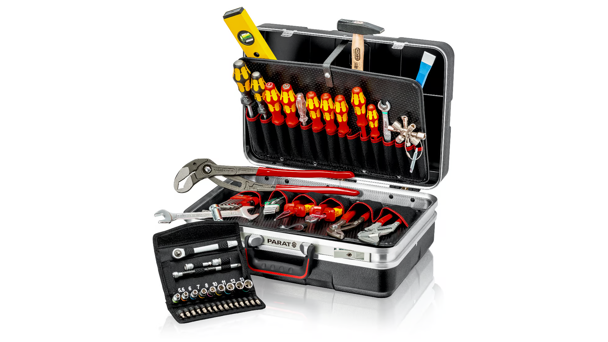 A Knipex Vision27 szerszámkészlet 52 db prémium minőségű, részben VDE-minősített szerszámot tartalmaz a DIN EN 60900 szabványnak megfelelően. A készlet olyan közkedvelt és elismert márkák szerszámait foglalja magába, mint például a Knipex és Wera.