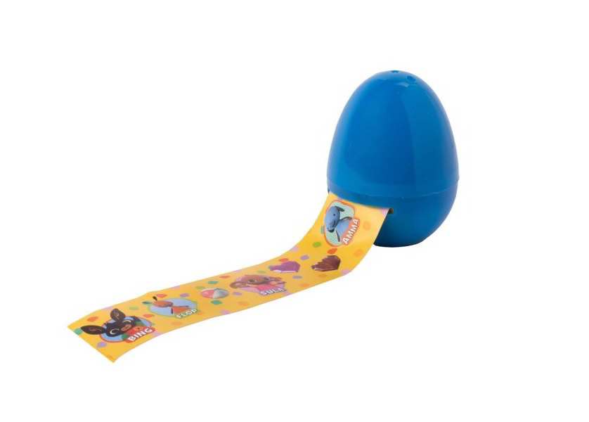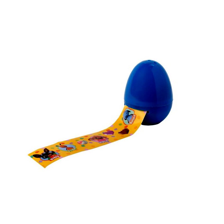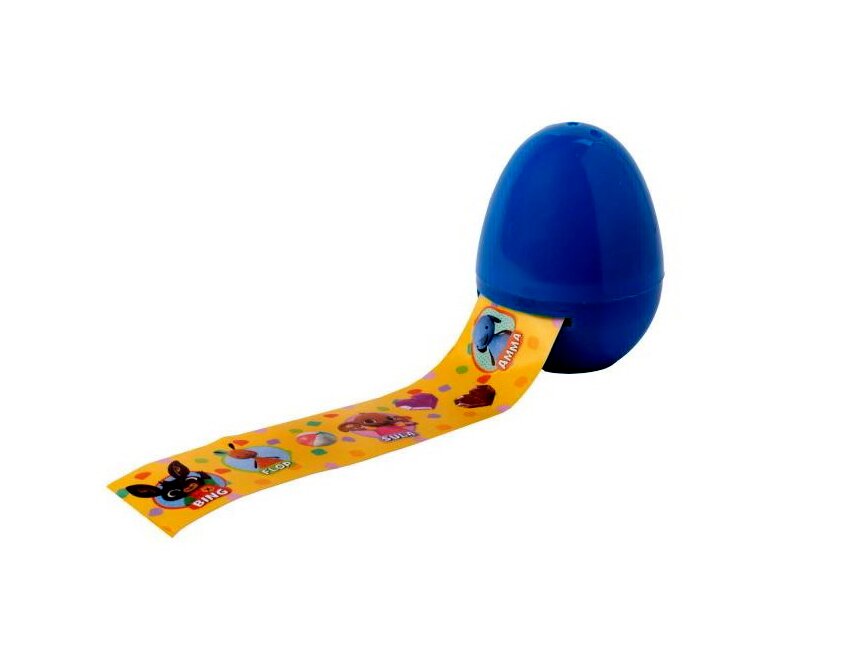 Bing nyuszi rajongói garantáltan imádni fogják ezt a színes tojást, ami egy 3 méter hosszú matricaszalagot rejt. A szalag telis-tele van a mese szereplőivel: a gyerekek megtalálják rajta Amma, Sula, Flop és még sok másik karakter aranyos képét. A matricák felragaszthatók füzetekre, könyvekre, mappákra, de akár a gyerekszoba falára is. Az élénk színek és a mesesorozatban látottakkal megegyező aranyos grafikák biztosan elnyerik majd a Bing-rajongók tetszését - na meg melyik kisgyerek ne szeretne matricákat ragasztgatni?