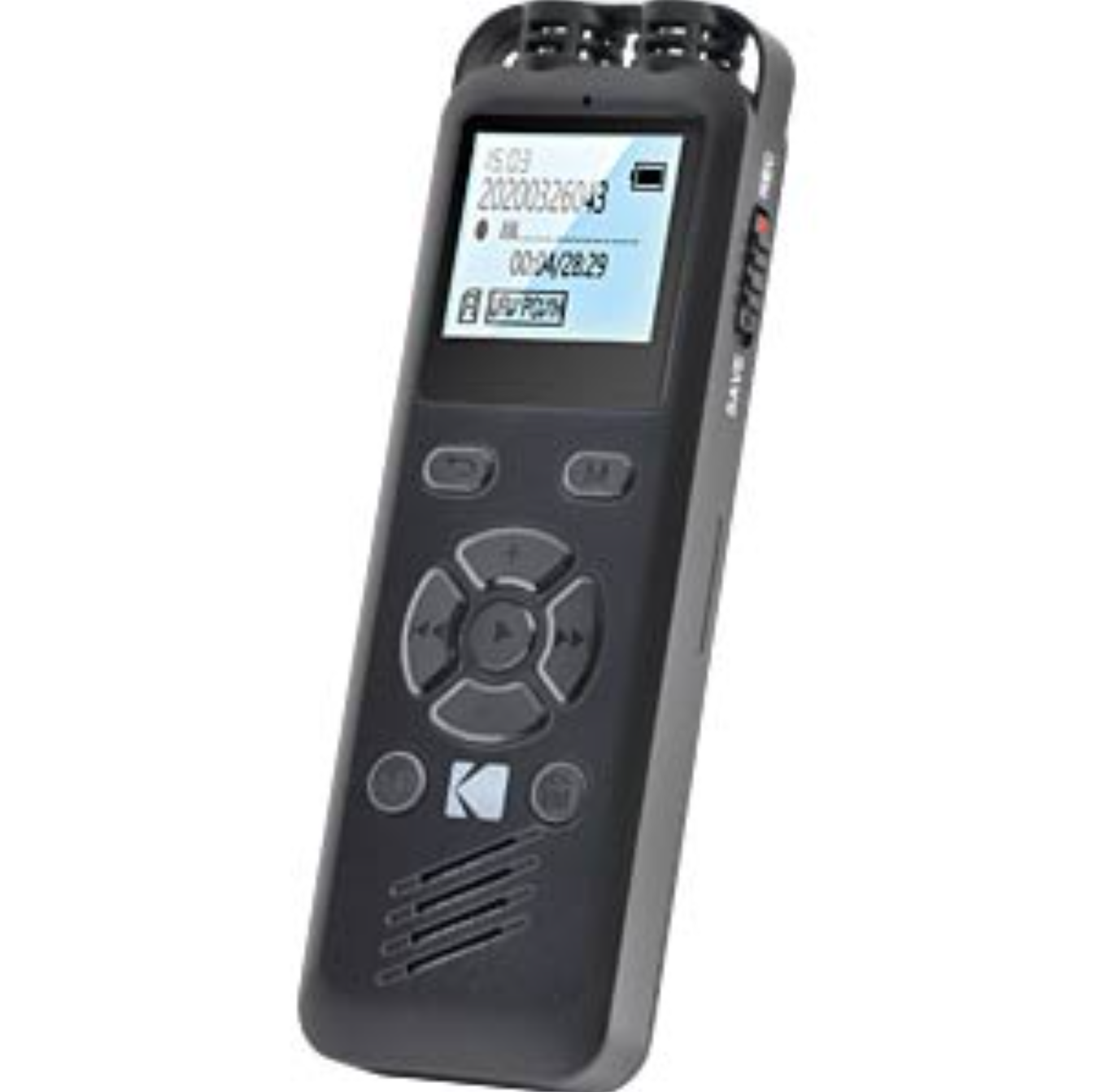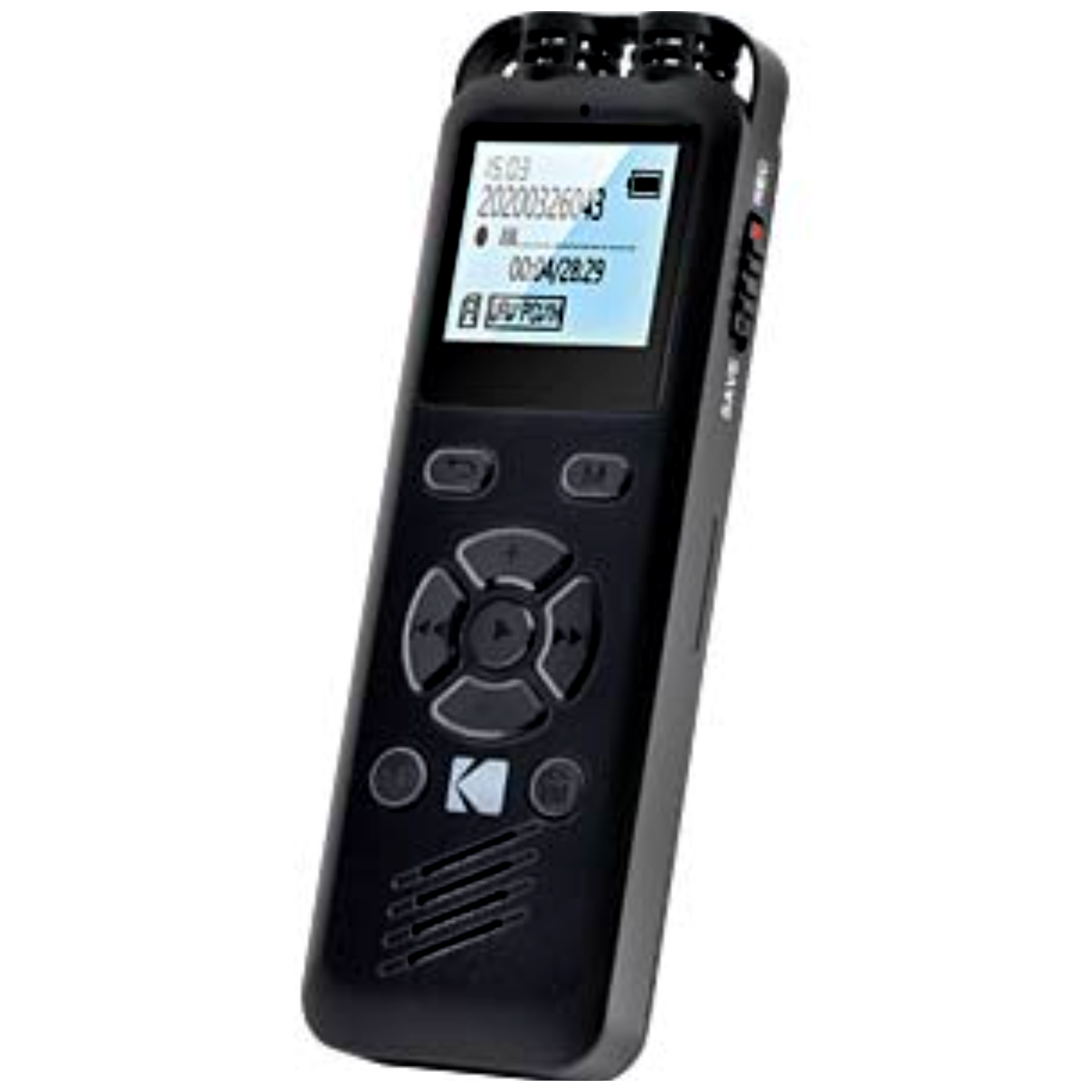 A Kodak VRC 250 digitális hangrögzítő kompakt kialakításának és intuitív kezelésének köszönhetően ideális azonnali hangfelvételek készítéséhez WAV/MP3 formátumban, bárhol is legyen. Beépített lítium akkumulátora akár 20 óra üzemidőt biztosít, 8 GB-os belső memóriája pedig 581 óra felvételi időt biztosít a megszakítás nélküli használathoz. Akár az eszébe jutó ötletek rögzítésére, akár a fárasztó jegyzetelés elkerülésére olyan helyzetekben, amikor a legjobb, ha nem hagy ki semmit, ez a készülék megfelel az Ön igényeinek, és olyan hasznos funkciókkal rendelkezik, mint a hangvezérelt felvétel vagy az automatikus felvételi mód. Plug and Play technológiája nemcsak a felvételek számítógépre való átvitelét teszi egyszerűvé, hanem a zenék letöltését is, így MP3-lejátszóként is használhatja. Végül pedig még külső mikrofon vagy fülhallgató is csatlakoztatható hozzá a két 3,5 mm-es sztereó be- és kimeneti csatlakozónak köszönhetően.