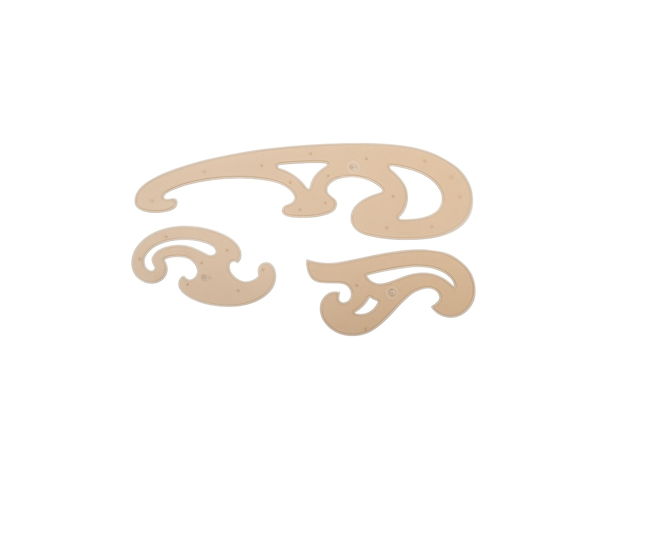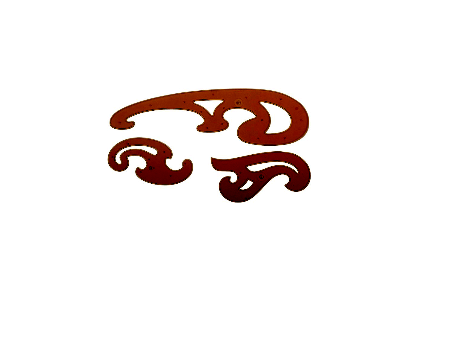Átlátszó, 2-es méretű, műanyag görbevonalzó készlet műszaki rajzokhoz.