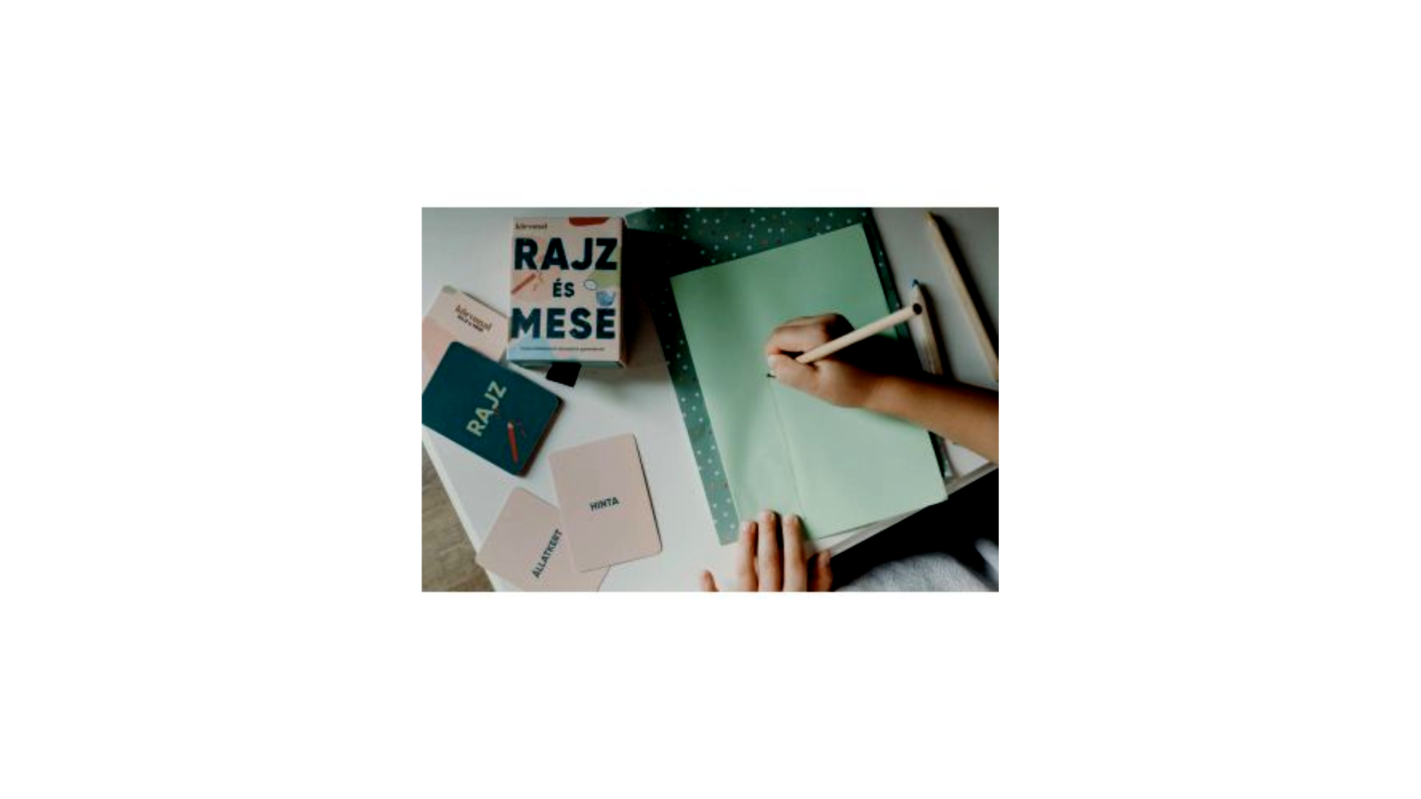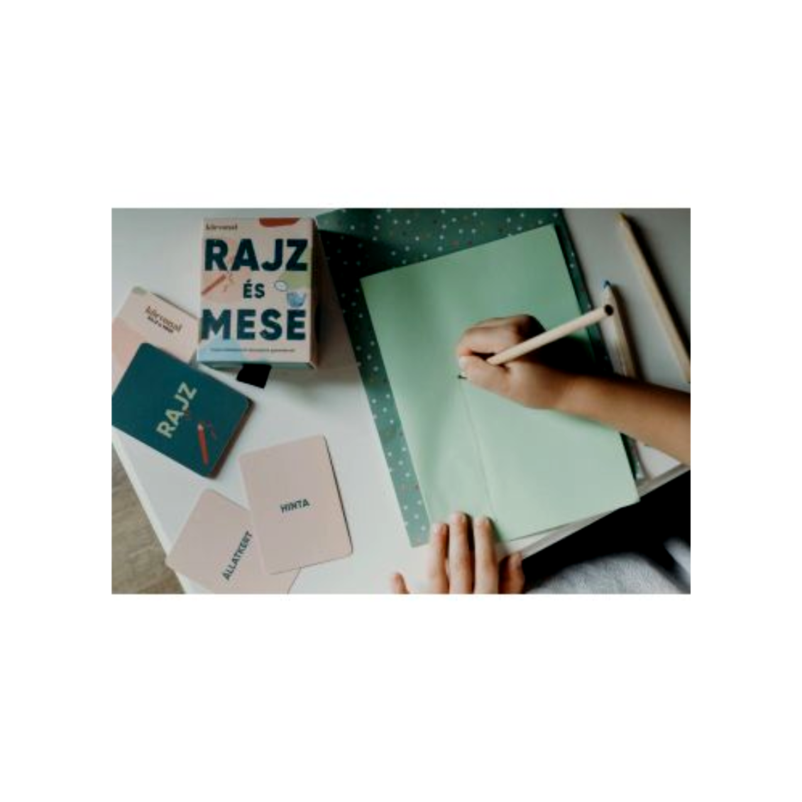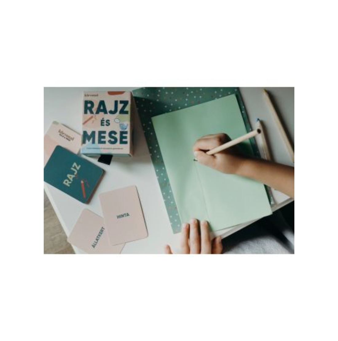 - 80 db kártyalap: Melyeken olyan feladatok és kategóriák találhatók, amelyek a gyermekek képzelőerejét és kifejezőkészségét teszik próbára.