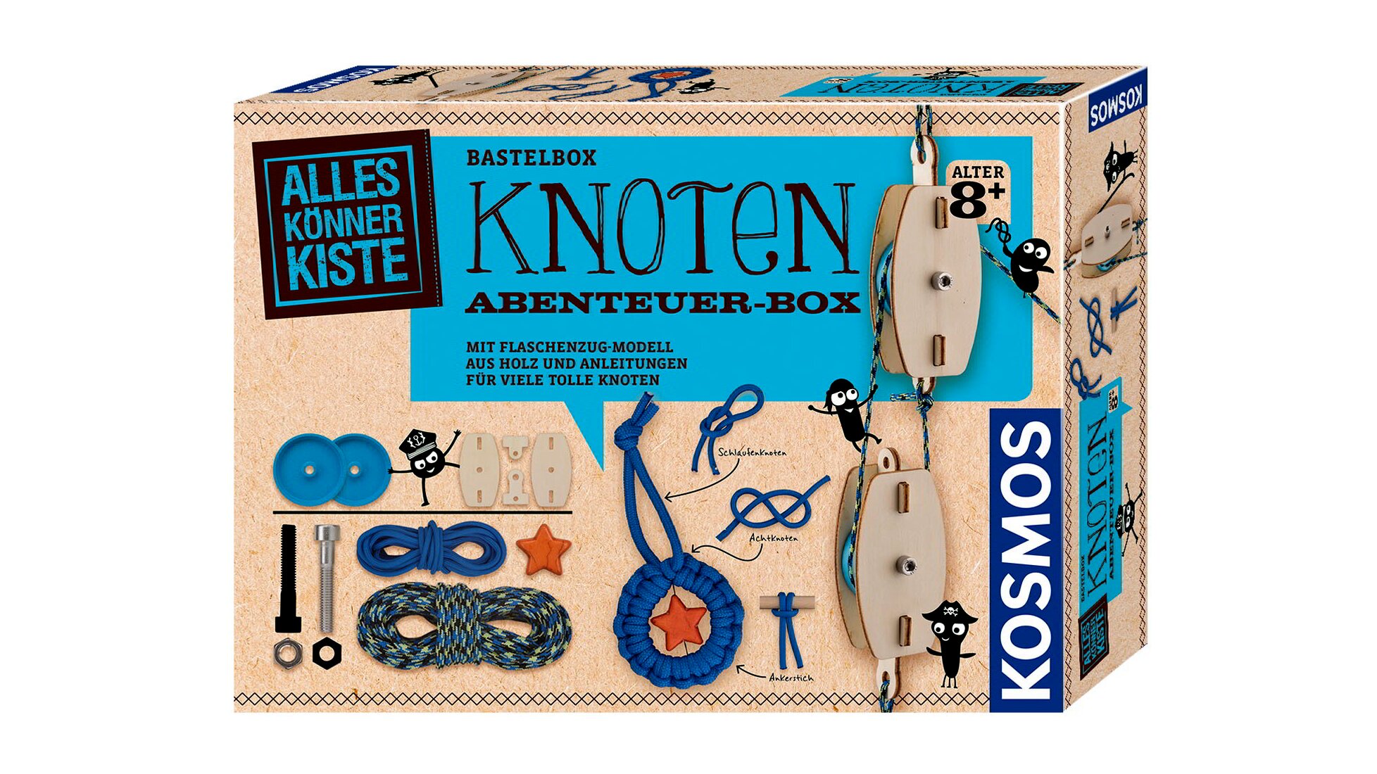 Vicces csomós puzzle meglepetés pillanat alatt! Ezzel a kézműves készlettel a nyolc éves gyermekek lépésről lépésre megtanulják az élethez szükséges legfontosabb csomókat. Meglepetés: A saját készítésű kulcstartó "Meisterstück" esetében az újonnan megtanult trükkök alkalmazhatók. Különleges kiemelésként a doboz egy nagyszerű, fából készült szíjtárcsa modellt tartalmaz.