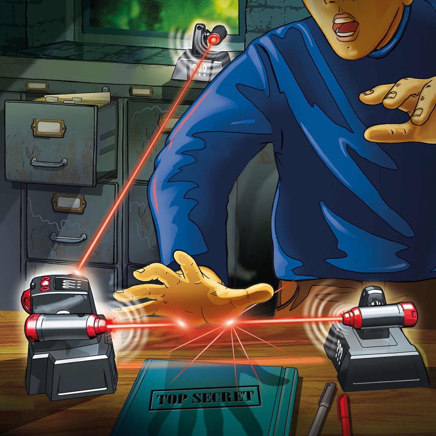 Csak egyetlen lépés ezeken a láthatatlan fénysugarakon keresztül, és a riasztás megszólal! Minden fiatal nyomozó számára ez az ideális lehetőség arra, hogy búvóhelyüket nagyszerű biztonsági fejlesztésnek vessék alá. Egy kis vízköddel még láthatóvá válnak az egyébként láthatatlan fénysorompók is, ami még több detektív szórakozást tesz lehetővé. Egyszerűen gondolkodjon stratégiailag és helyezze el a fénykorlátokat