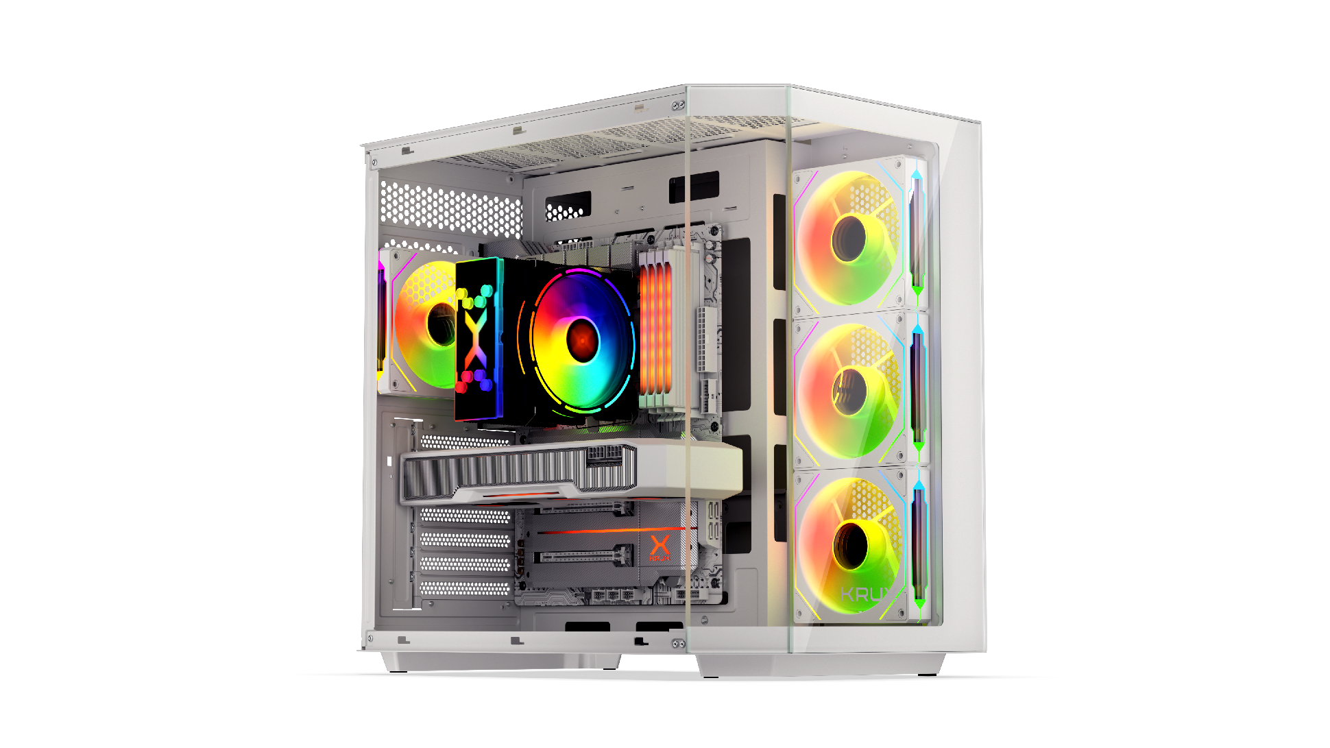 Krux Empero Midi torony Számítógépház + 4db 120mm ventilátor - Fehér