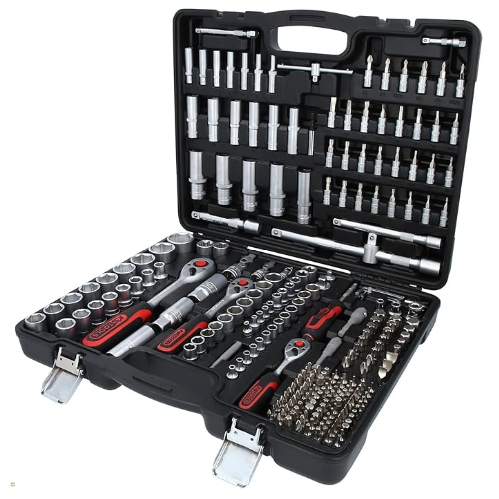 Ez a 255 részes dugókulcs készlet ideális választás mindenkinek, aki komplett, jól áttekinthető és tartós megoldást keres szerelési, karbantartási vagy építőipari munkákhoz. A készlet 1/4", 3/8" és 1/2" meghajtású elemeket tartalmaz, így a legkülönfélébb csavarozási feladatokra kínál gyorsan elérhető, profi szerszámokat egyetlen, átlátható rendszerben.