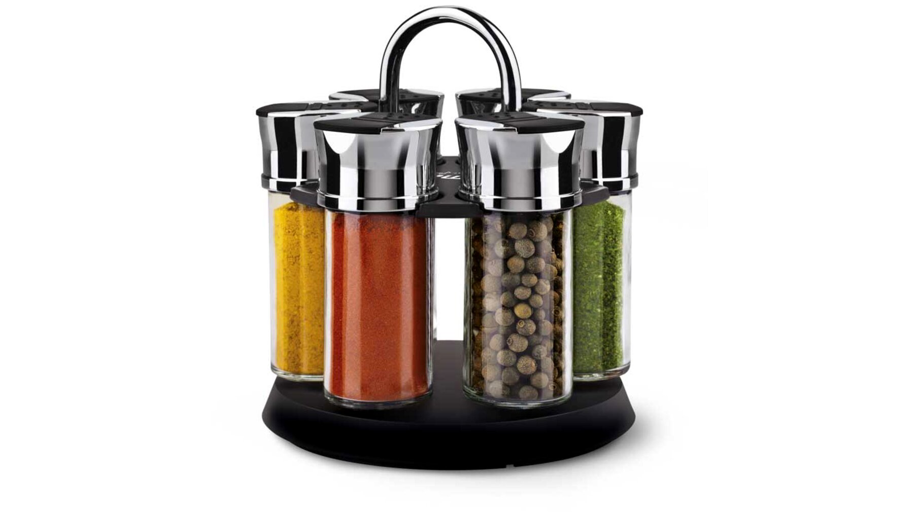 - A szettben 6 db fűszertartó található tartozék állvánnyal