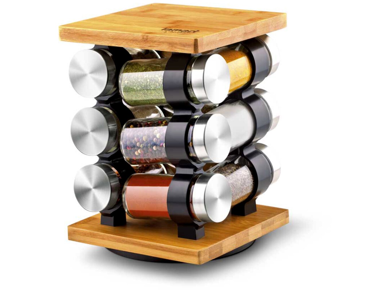 A Lamart LT7010 fűszertartó készlet egy minimalista kialakítású eszköz, amely tökéletesen illeszkedik bármely modern konyhába. Az elegáns bambuszforgóállvány biztosítja, hogy az üvegek mindig könnyen elérhetők legyenek, míg az üvegek átlátszó dizájnja lehetővé teszi a gyors azonosítást.