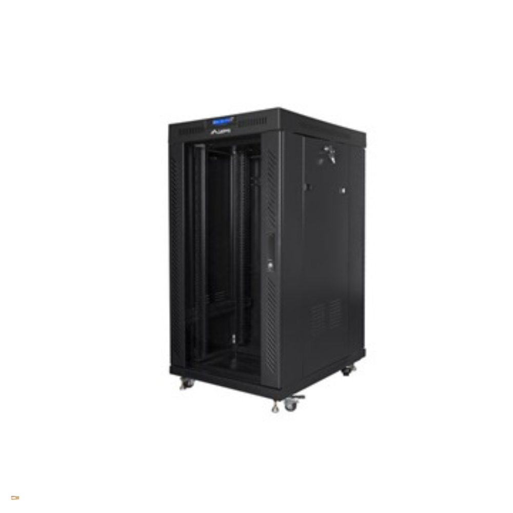 • U-magasság: A 22U kapacitás kisebb szerverhelyiségekhez ideális – elegendő tér központi routereknek, switch stacknek, néhány szervernek és egy UPS-nek.