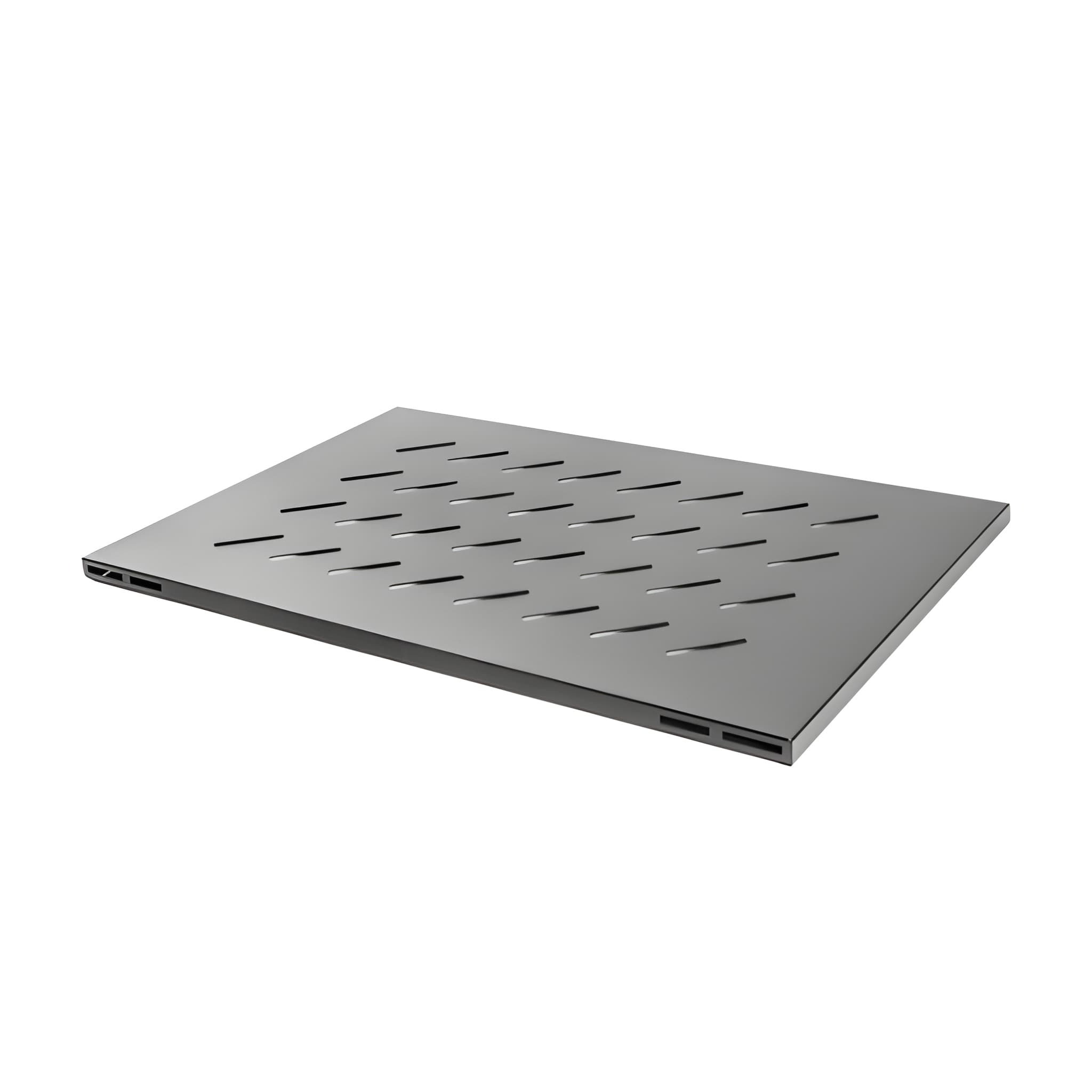 A polc mélysége kifejezetten a 1000 mm-es nyitott rack állványokhoz lett tervezve, így optimális alátámasztást nyújt a teljes felületen. A 19"-os szabvány szerinti furat- és szélességi kiosztásnak köszönhetően a legtöbb, elterjedt rack kerettel kompatibilis.