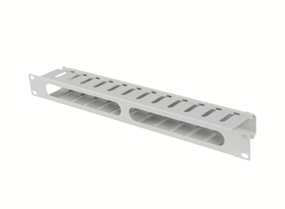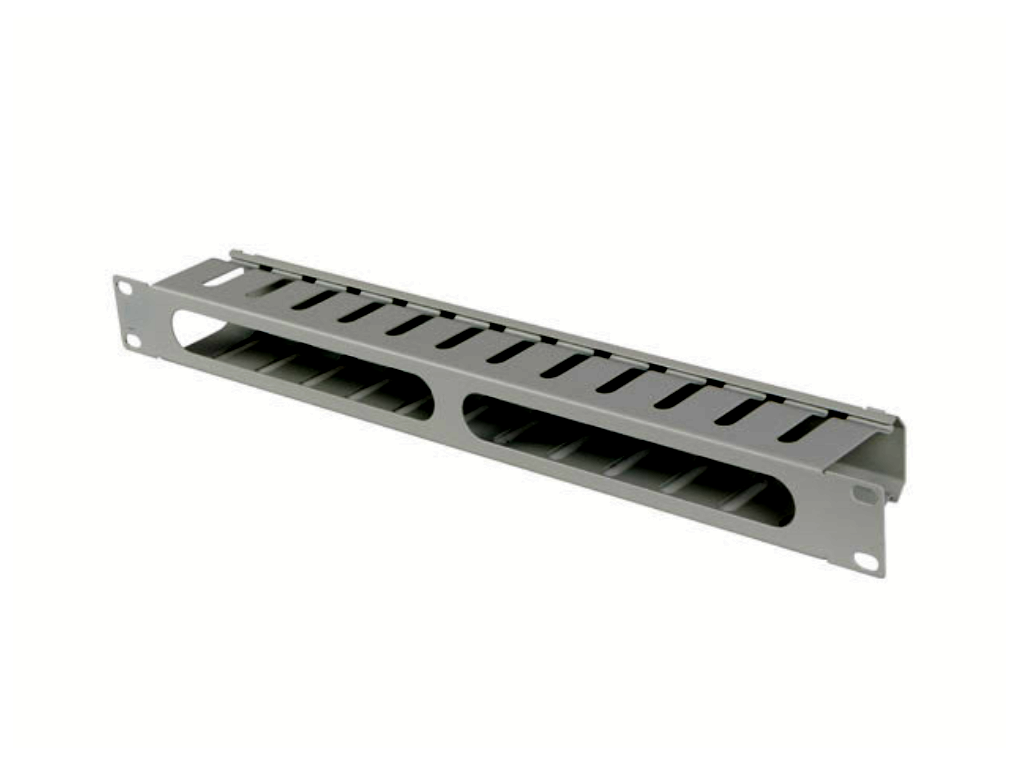 Kábelrendező 1U A típusú Lanberg, 19"-os rackszekrényekhez. A szervező kábelnyílásokkal és dugóval van ellátva.