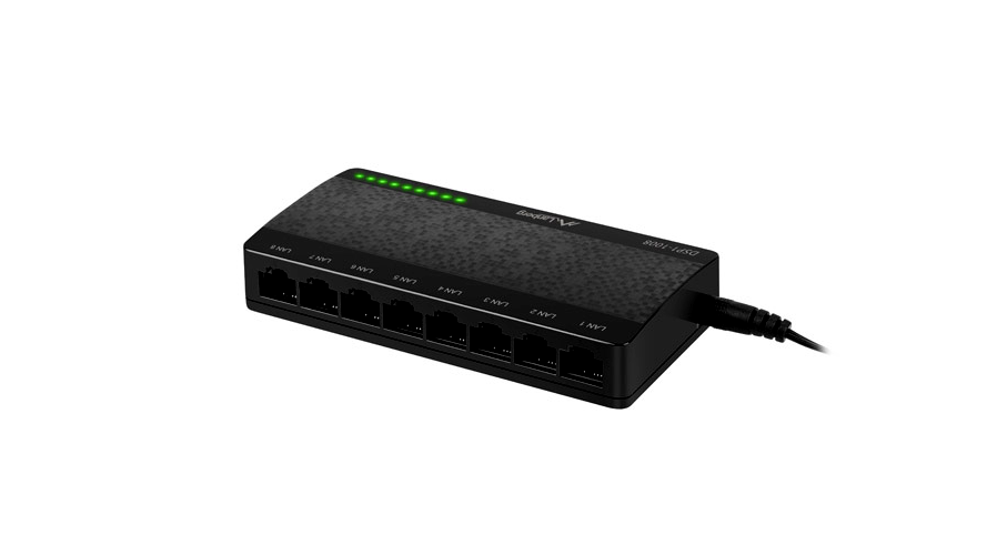 - PSU működését jelző LED-ek: Power, LAN portok (Link / ACT),