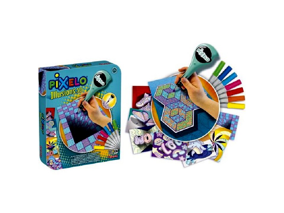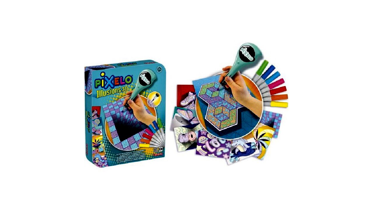 A Pixelo Illuzió 3D-vel gyönyörű és színes rajzokat készíthetnek a gyerekek pillanatok alatt. Ehhez szükségük lesz a Pixelo tollra és egy kiválasztott képre. Az elektronikus tollal pontozott mintákat készíthetnek, így szinte életre kelthetik az alkotást. A kiválasztott színes filctollat bele kell helyezni a pontozóba, ami automatikusan elkészíti a képet. A gyerekek többféle illúziót is elkészíthetnek a csomagnak köszönhetően.