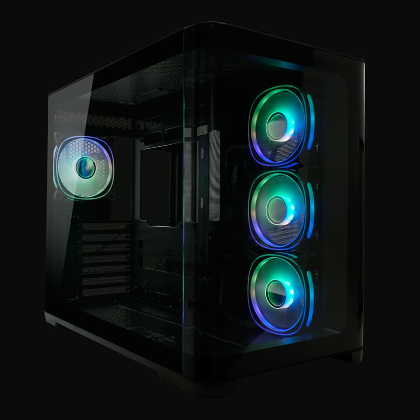 Az LC Power LC-8001B-ON egy hangszigetelt ATX ház, amely lenyűgöző kialakítással és kiváló hűtési teljesítménnyel rendelkezik. Az éles megjelenésért négy beépített ARGB ventilátor felel, melyek színei a mellékelt távirányítóval, a ház I/O paneljén lévő gombokkal vagy a főbb RBGA alaplapi szoftvereken keresztül is beállíthatók. A temperált üveg elő- és oldalpanelek révén igazán kiemelkedhet a számítógép belső megjelenése.