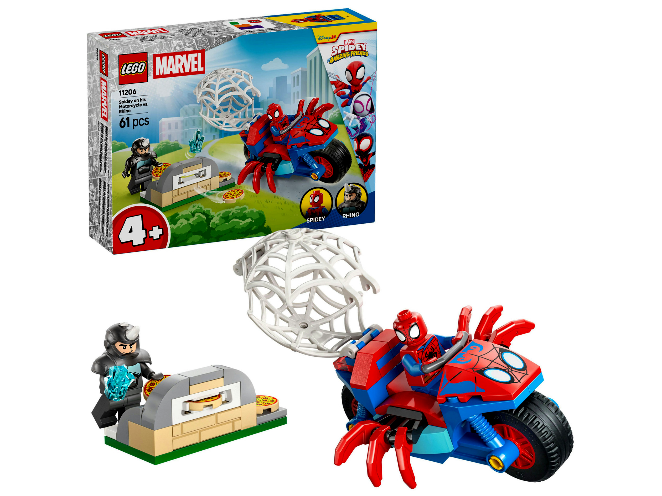 Pókember üldözi Orrszarvút, aki ellopott egy értékes kék drágakövet. A motoros üldözés közben Orrszarvú pizzát lövedékezik a pizzasütő kilövőjével, hogy megállítsa hősünket. A kaland végén Pókember egy óriási pókhálóba ejti az ellenfelét, amelyet a gyerekek a motor hátuljára is rögzíthetnek, így a gonosztevő biztosan nem menekülhet el.