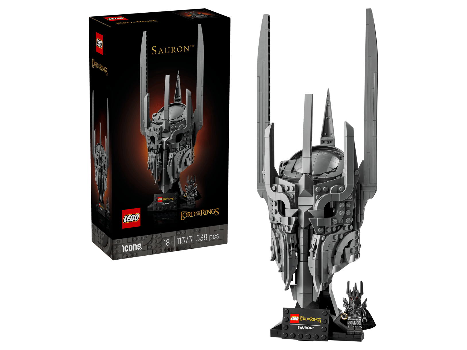 A készlet részletgazdag építési élményt kínál, amely során lépésről lépésre kel életre a sötét nagyúr ikonikus fejfedője. Az elegáns fekete kiállítóállvány és a névtábla igazi prémium hangulatot kölcsönöz, a mellékelt Sauron minifigura pedig – kezében az Egy Gyűrűvel – önmagában is figyelemre méltó gyűjtői darab.