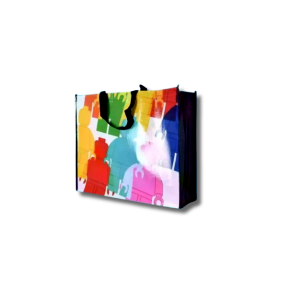 Ez a színes LEGO mintás bevásárló táska tökéletes kiegészítő minden rajongónak! Nagy méretének köszönhetően ideális a napi bevásárláshoz, születésnapi ajándékok vagy akár LEGO készletek szállításához, de a strandon is stílusos társ lehet.