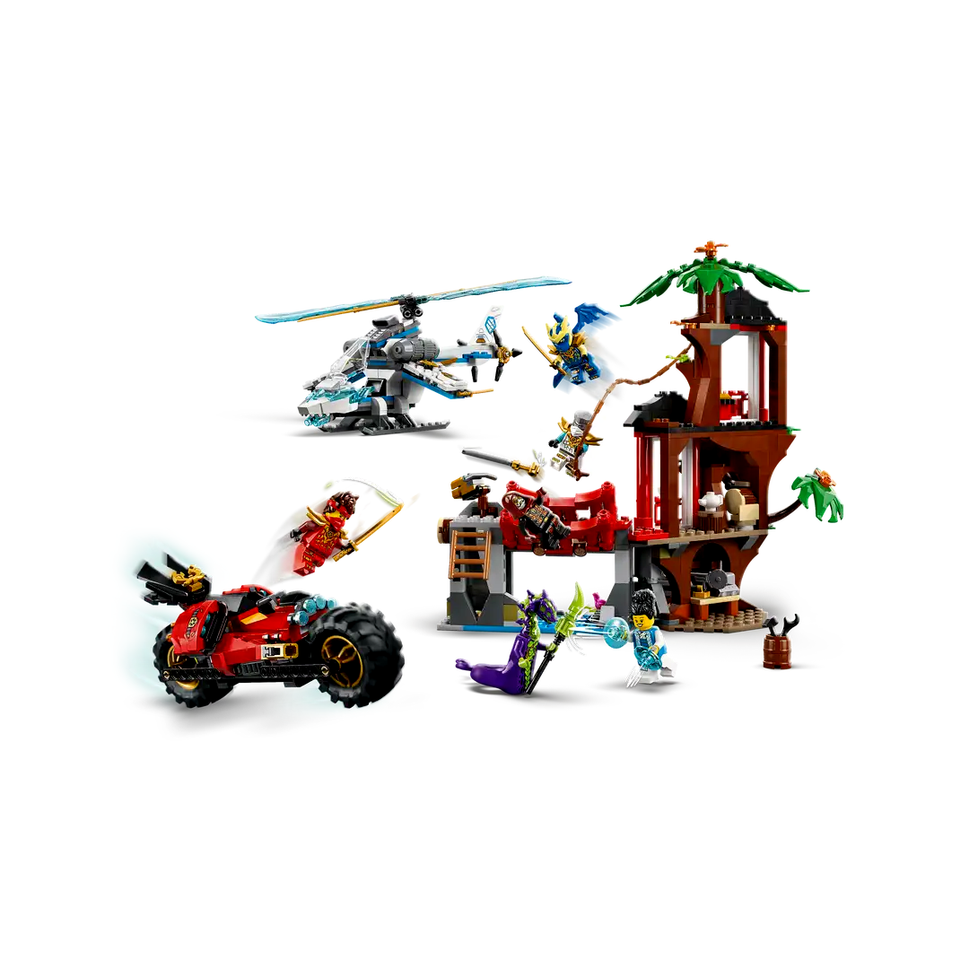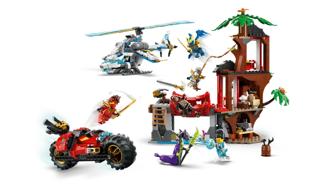 - Építhető elemek: 3 szintes lombház, nindzsa motorkerékpár, helikopter