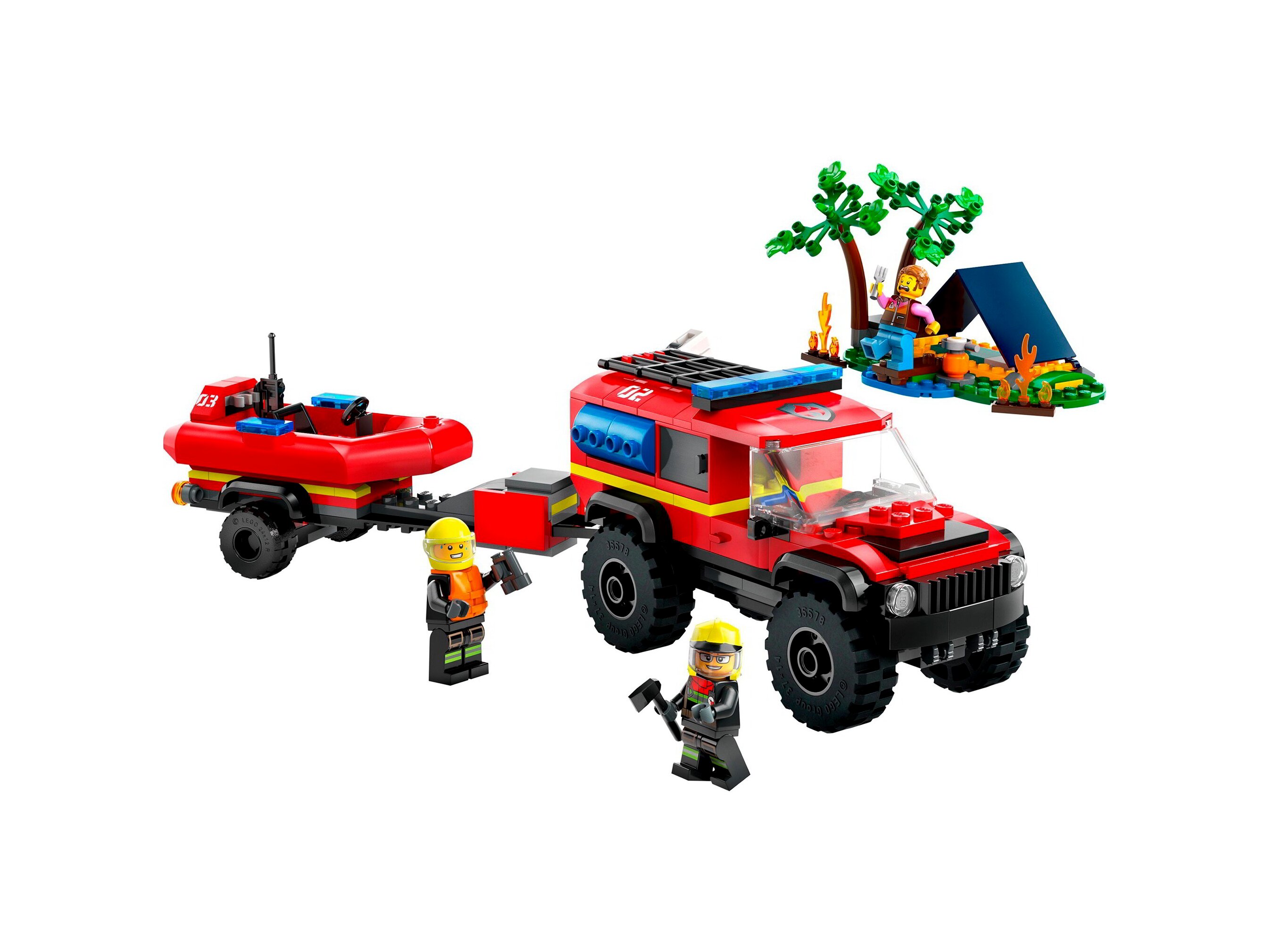 A LEGO City Tűzoltóautó játékkészletek funkciókban gazdag, szárazföldi, levegős és vízi játékokat kínálnak a fantáziadús játékhoz, korlátok nélkül. A gyerekek ezt a 4x4-es Tűzoltóautó mentőcsónakkal készletet a LEGO City termékcsalád többi termékéhez is hozzáadhatják (külön vásárolható meg) a még nagyobb kalandok érdekében!