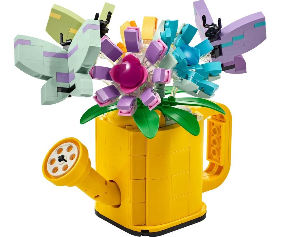 Tartalmaz egy kockákból épült, sárga játék locsolókannát, amelynek fogantyúja és rózsája van. 3 játék virág van benne, amelyek szirmai mozgathatók, valamint átlátszó pálcákon 3 pillangót is tartalmaz, amelyek úgy néznek ki, mintha repülnének.